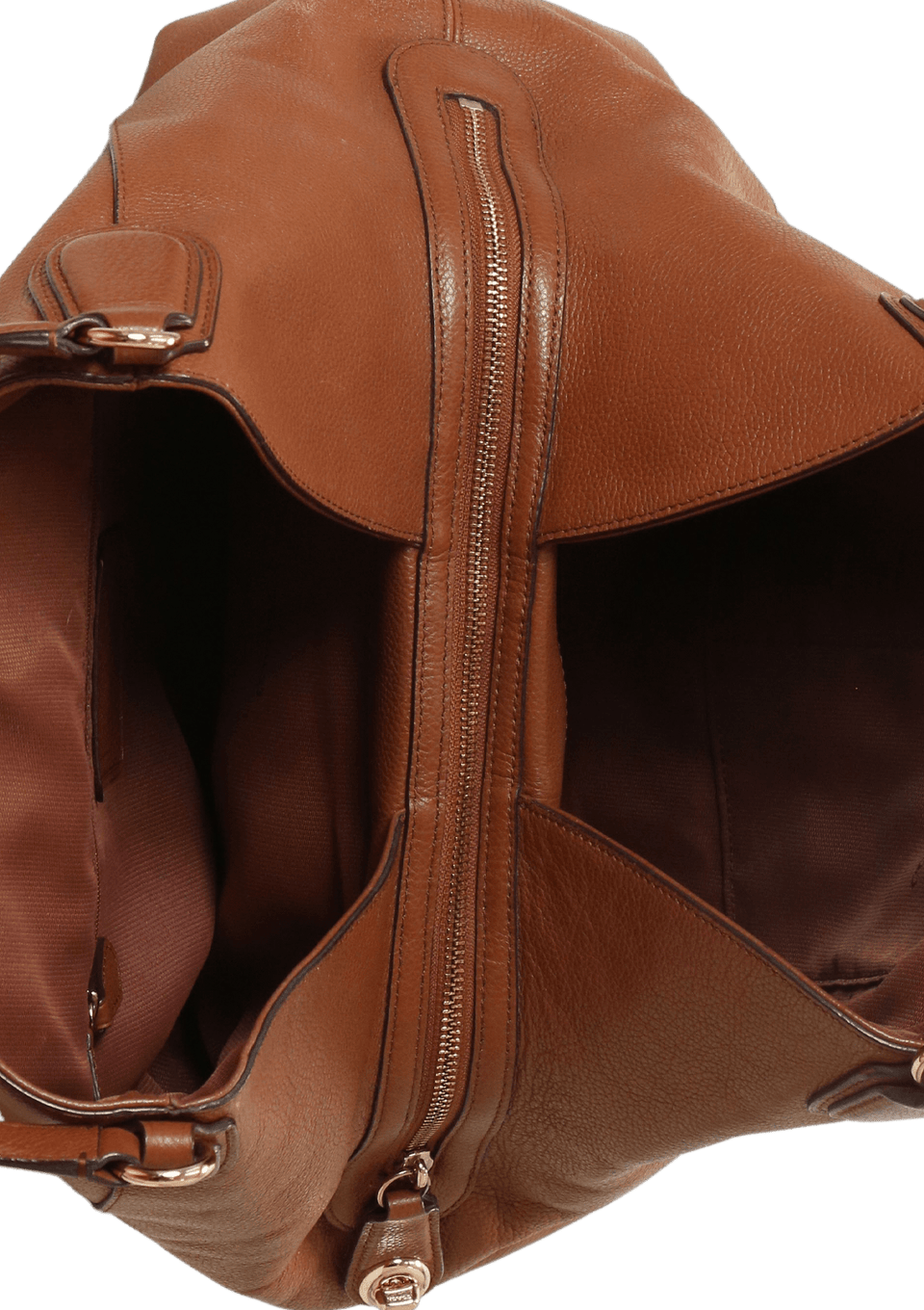 Condição: Bom, com aparência de usado. Apresenta desgastes nos cantos da base, leves riscos pelo couro da parte externa e ferragens e pequenos desgastes nos acabamentos das alças e superiores.