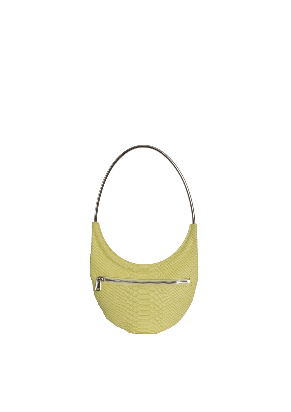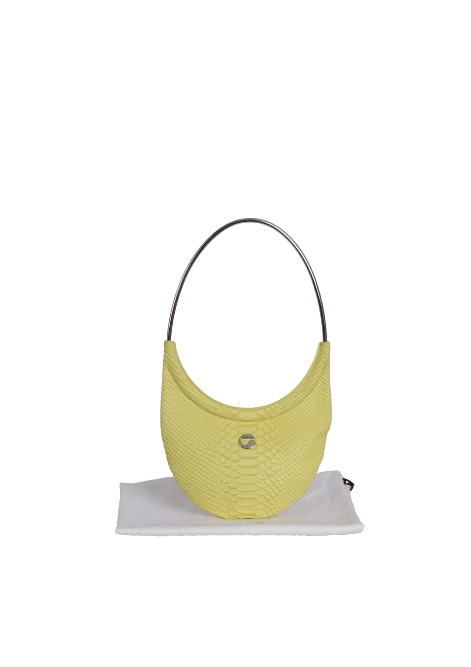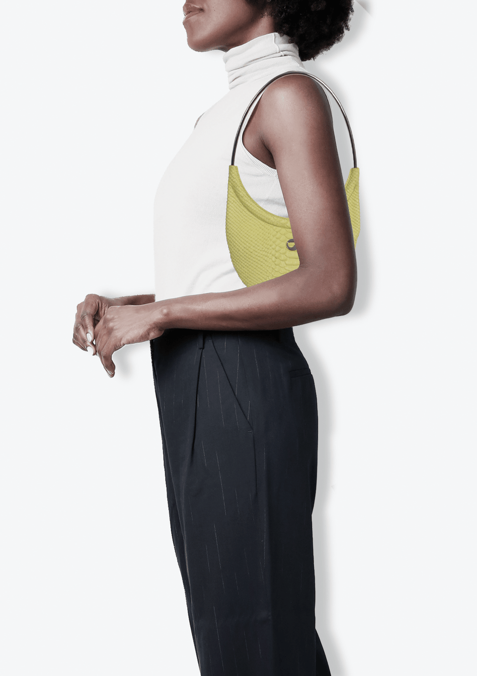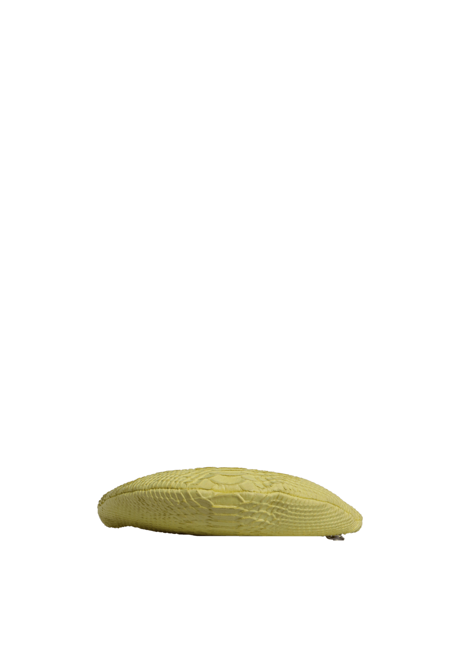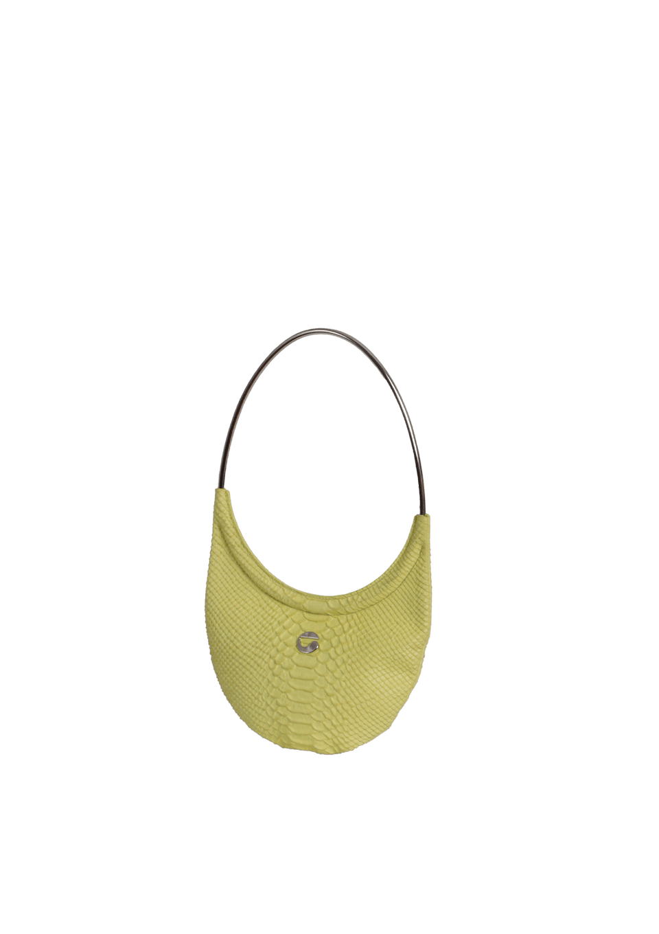 - Couro calfskin verde com acabamento de textura de pele de animal exótico;