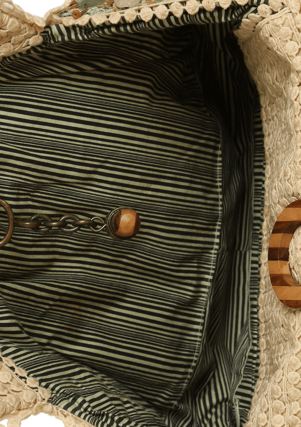 Condição: Produto bom, com aparência de usado. Apresenta ausência de algumas miçangas na parte inferior frontal.