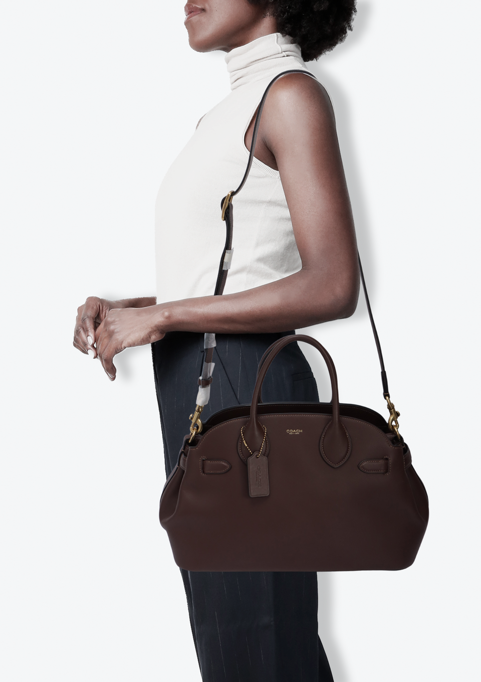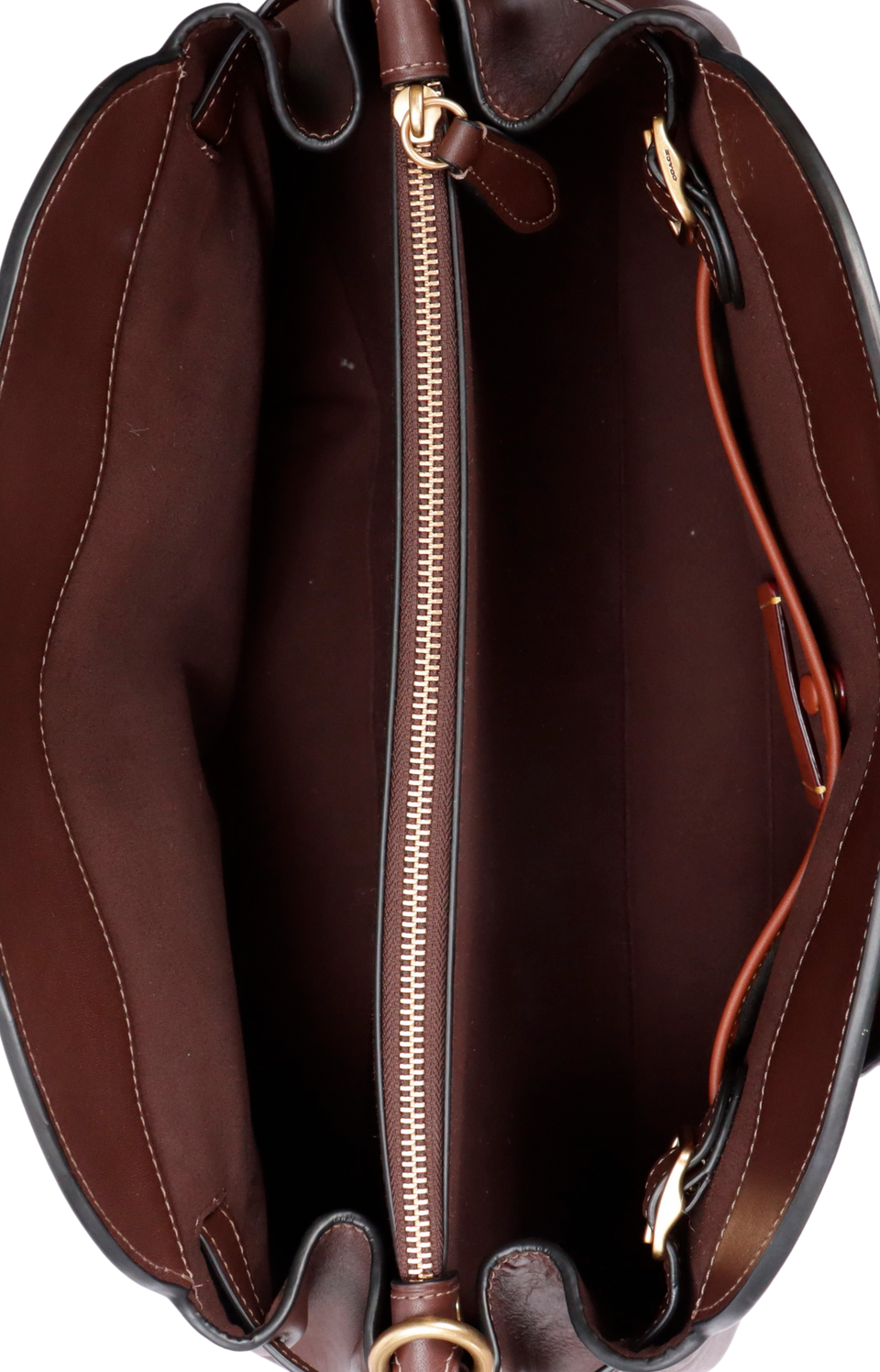Descrição do Material: Couro calfskin marrom com acabamento Glovetanned