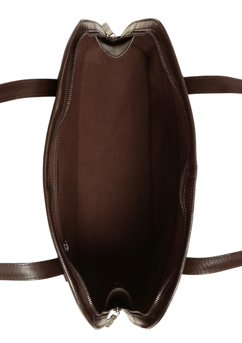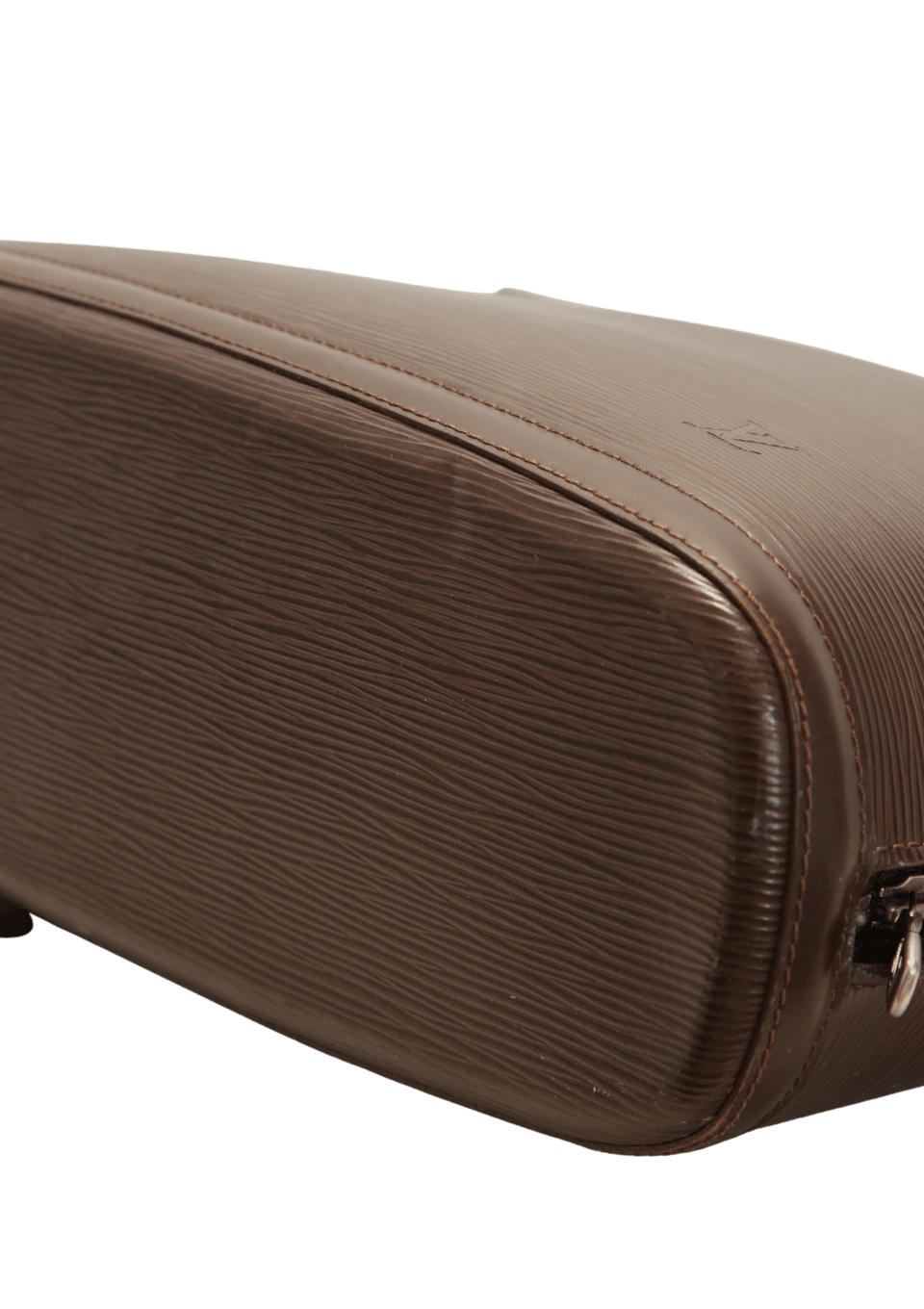 Condição: Bom, com aparência de usado. Apresenta pequena deformidade no couro pela base no lado direito, mínimas manchas esbranquiçadas pela base, alça e laterais da parte da frente, ferragens levemente oxidadas e pequenas marcas de uso na parte interna.