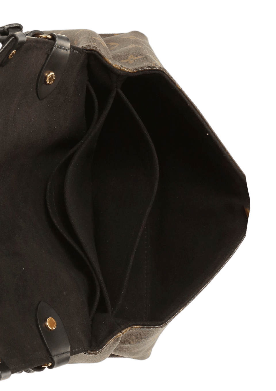 - Compartimento único, um bolso externo aberto e dois bolsos abertos internos.