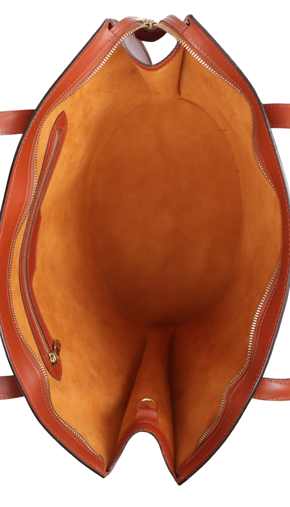 Bom, com aparência de usado. Apresenta pequenas manchas e marcas de uso pelo couro, especialmente na parte frontal superior e base, couro levemente ressecado e alças levemente enrijecidas, leves marcas de uso, oxidações e descolorações pelas ferragens, pequena mancha de caneta no couro na parte interna do acabamento superior do lado direito e pequenas manchas de uso pelo forro.