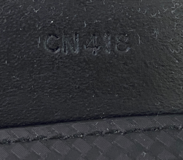 - Couro calfskin preto e couro estampado em fibra de carbono;