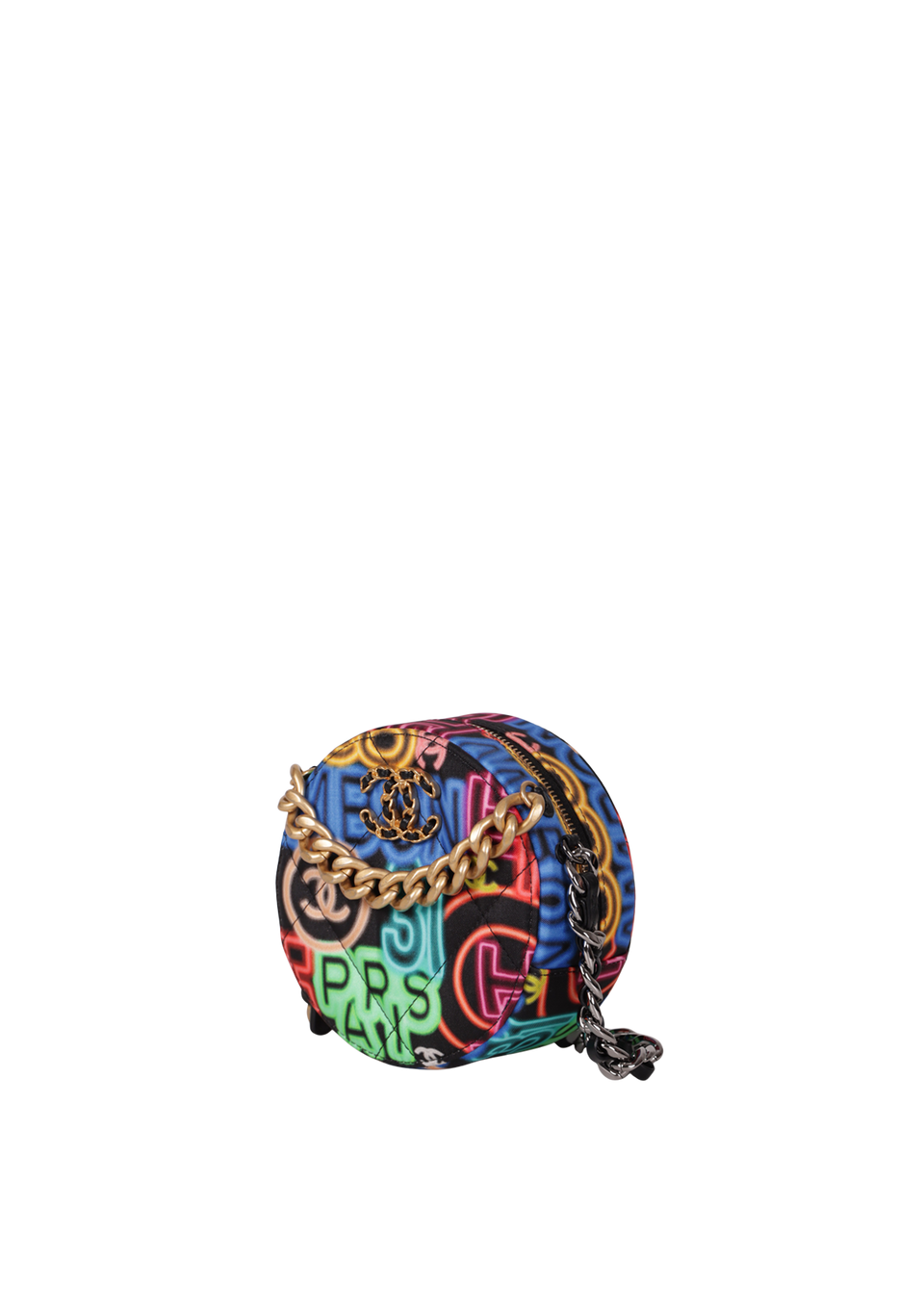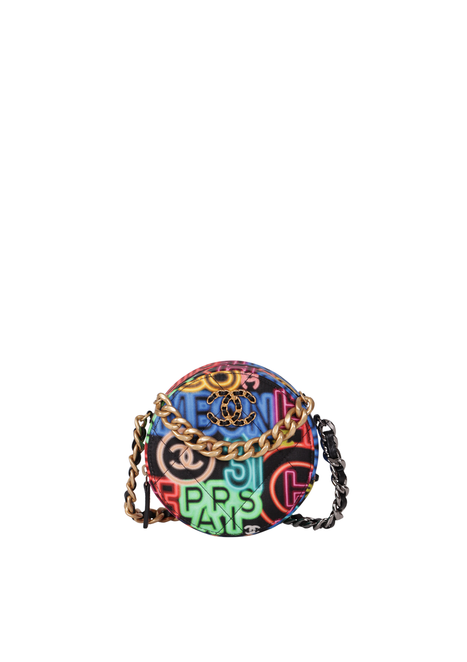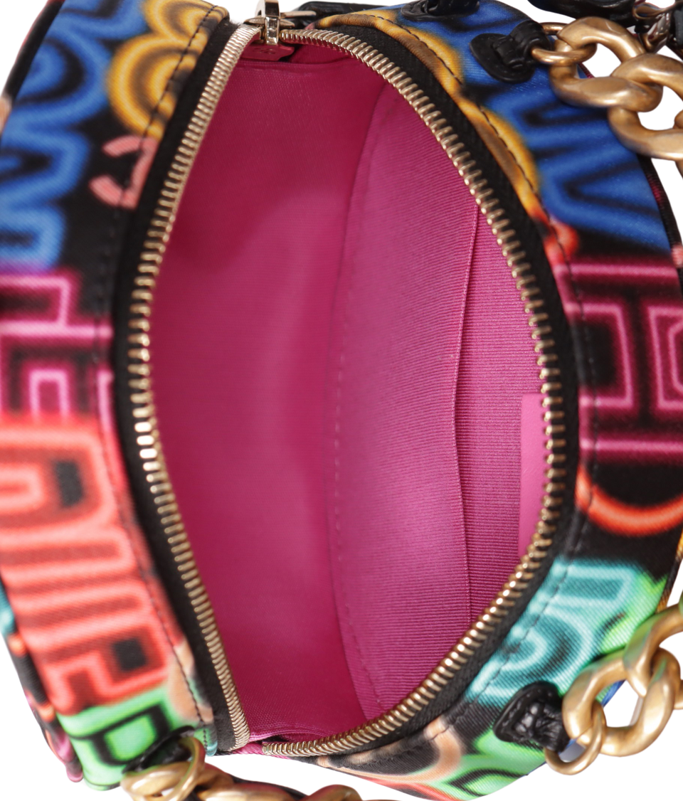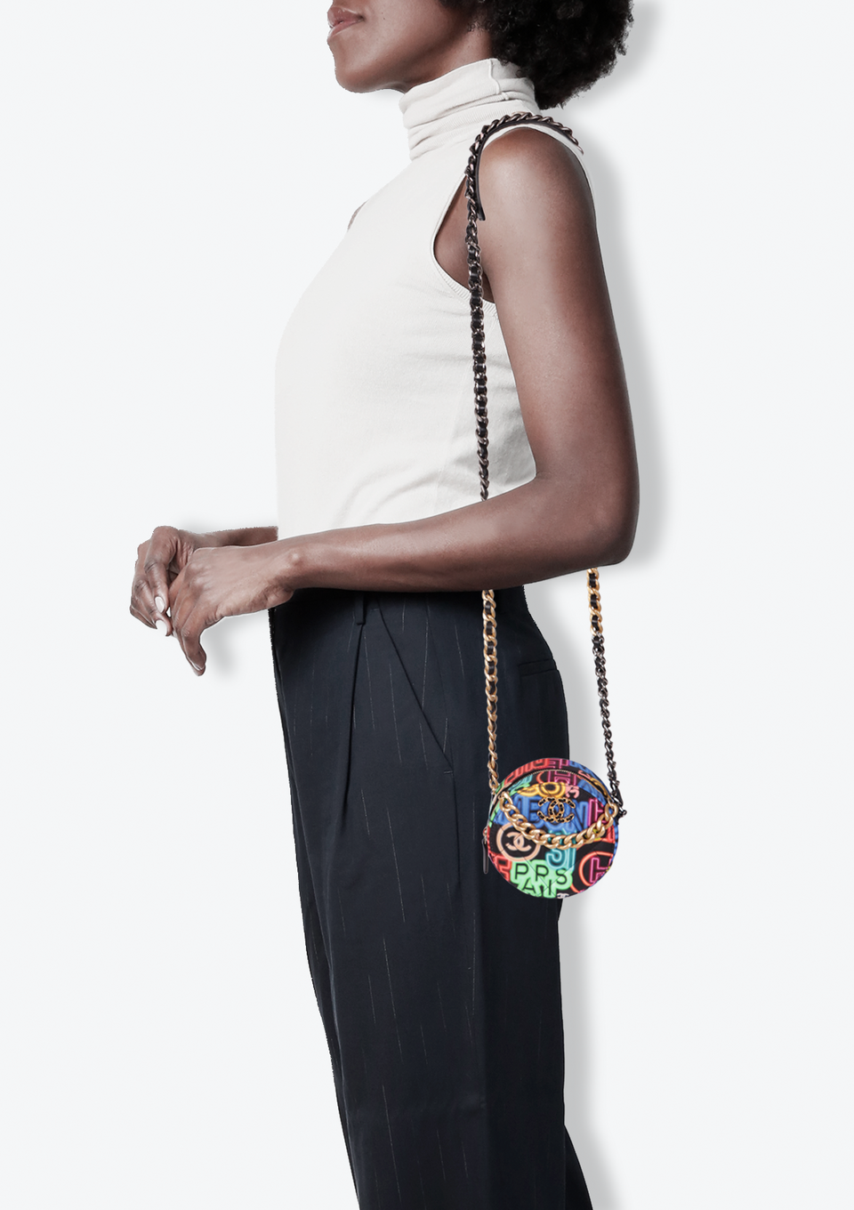Descrição do Material: Tecido multicolor com detalhes em couro calfskin preto