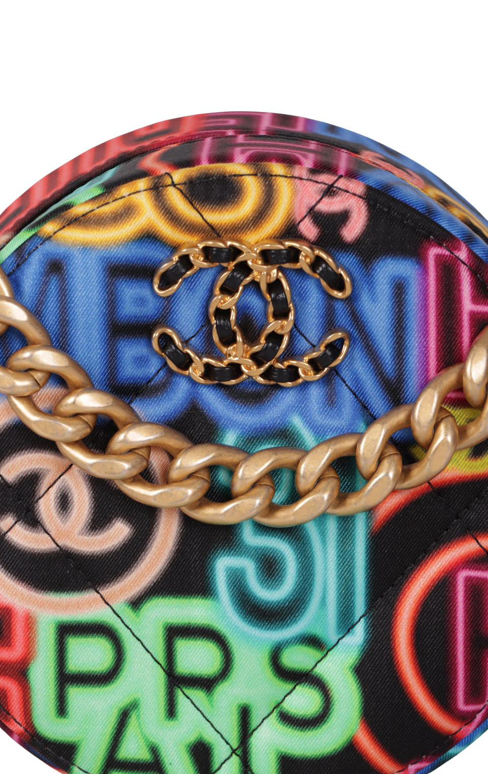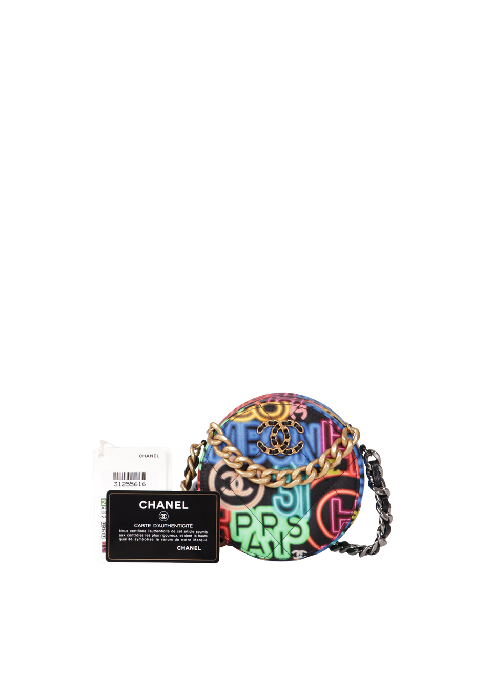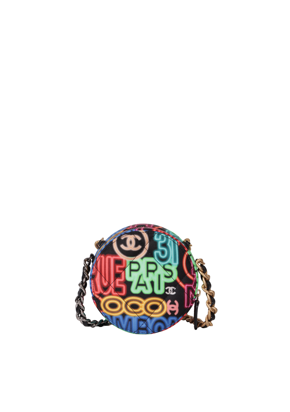 Descrição do Material: Tecido multicolor com detalhes em couro calfskin preto
