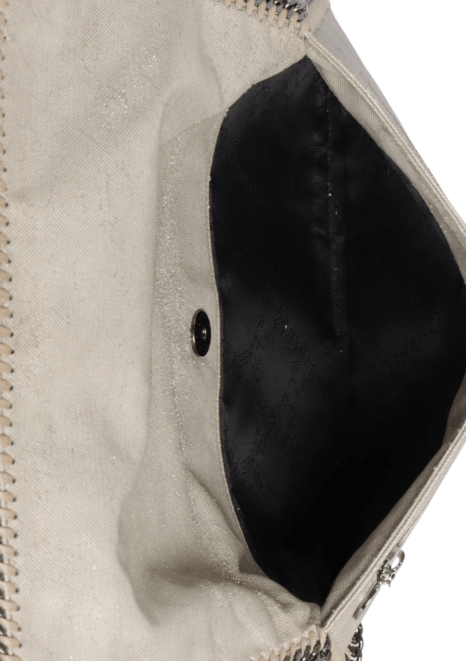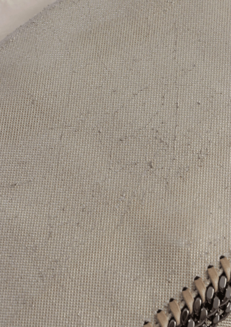 - Poliéster reciclado e algodão orgânico com selo GOTS bege;