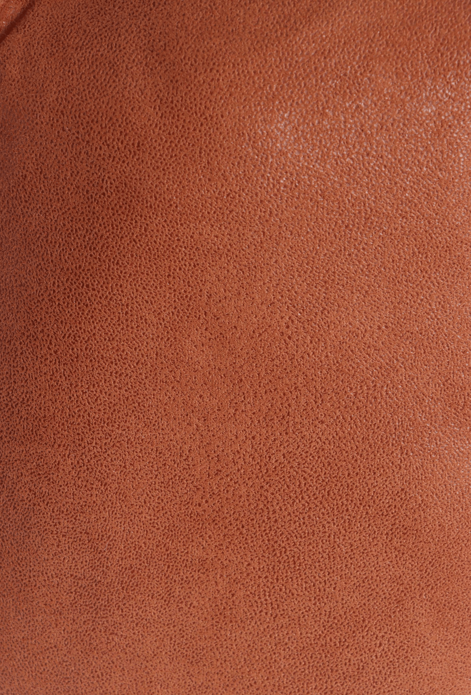 - Poliéster reciclado e algodão orgânico marrons com selo GOTS;