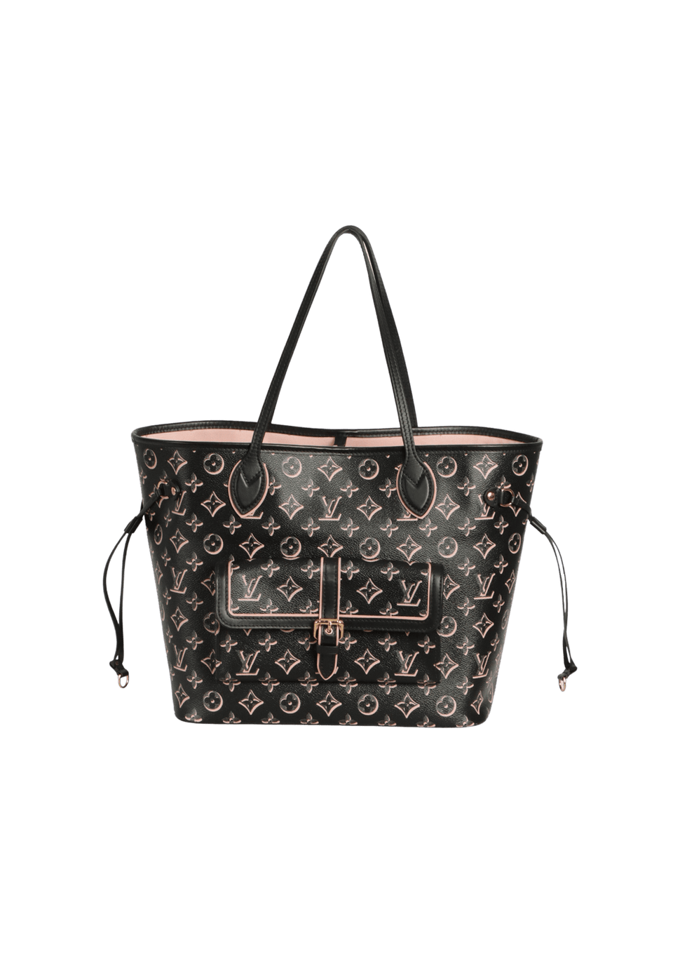 - Canvas Monogram Fall For You preto e rosa com detalhes em couro calfskin preto;