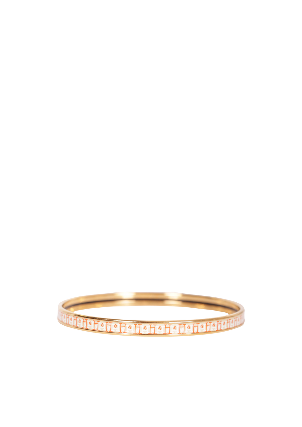 Descrição do Material: Metal banhado a ouro amarelo com acabamento esmaltado bege