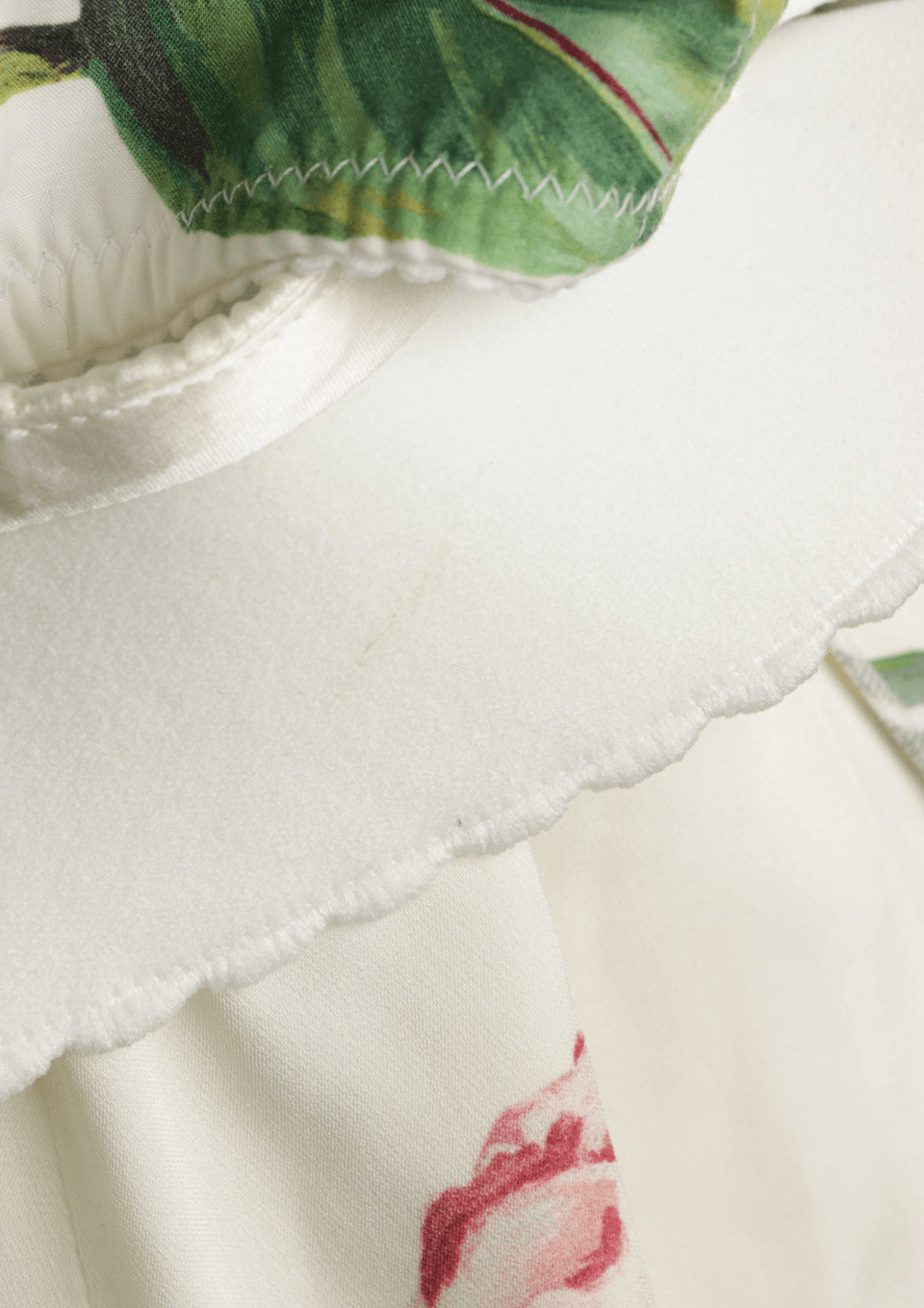 - Composição interna saia: 86% seda, 8% algodão, 4% elastano e 2% poliamida;