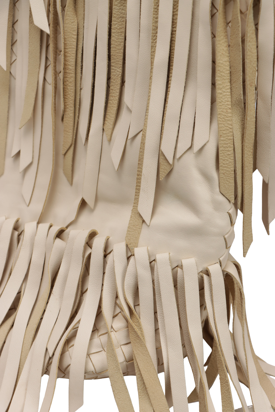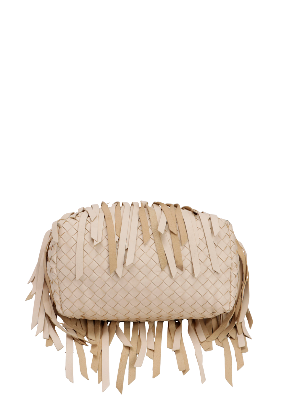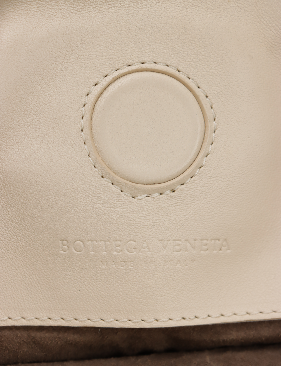 Descrição do Material: Couro calfskin off white com detalhes em acabamento Intrecciato