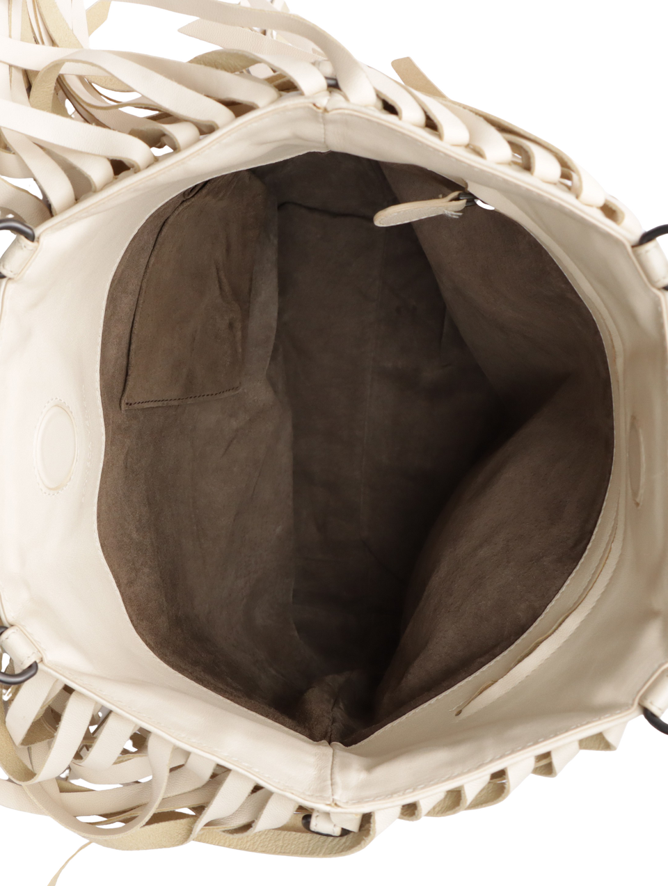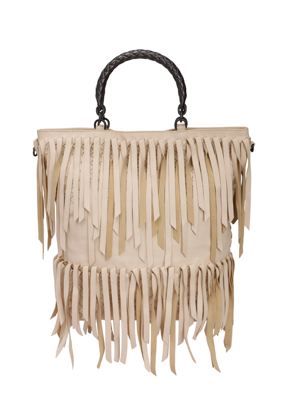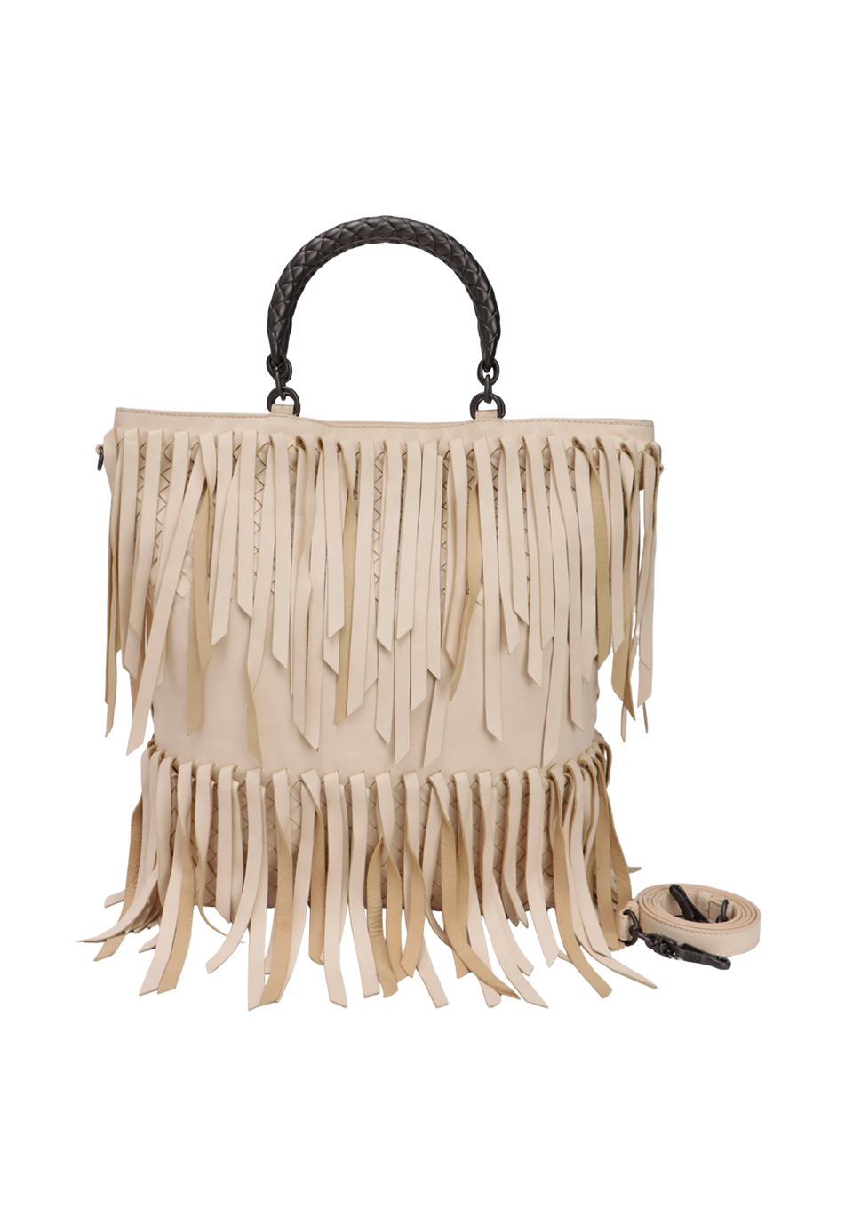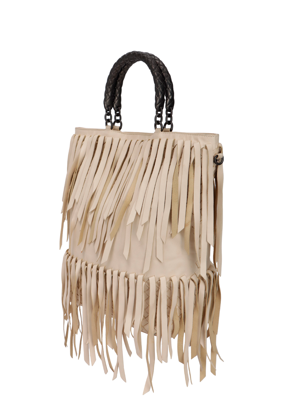 Descrição do Material: Couro calfskin off white com detalhes em acabamento Intrecciato