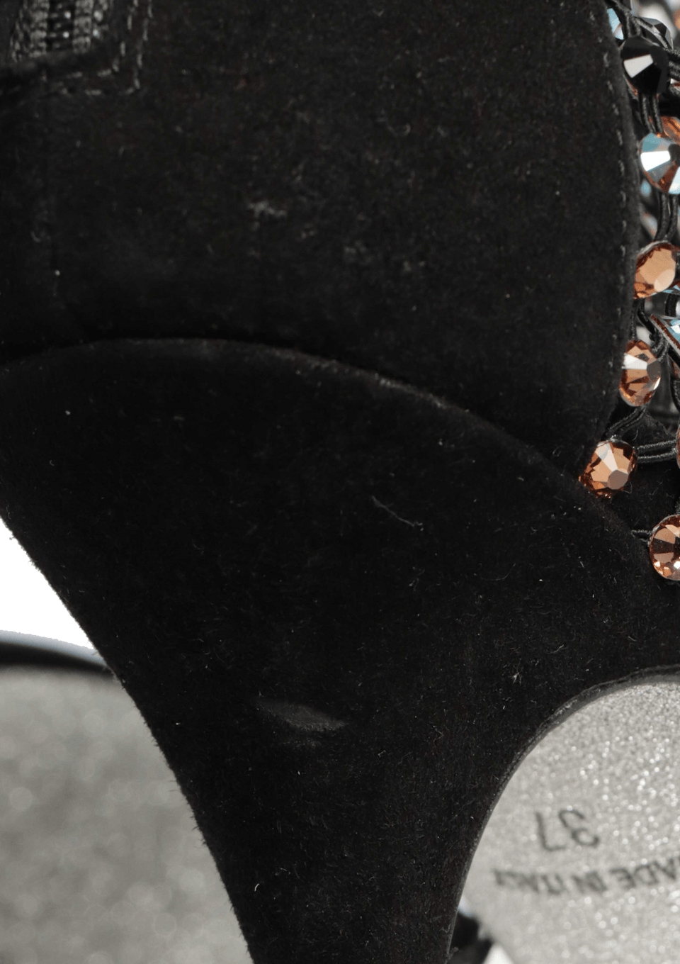 Condição: Muito bom, com aparência de seminovo. Apresenta pequenos desgastes e marcas de atrito nos saltos, levíssimos desgastes pela parte externa, leve reparo na colagem do salto direito e levíssimos desgastes e marcas de atrito nas solas.