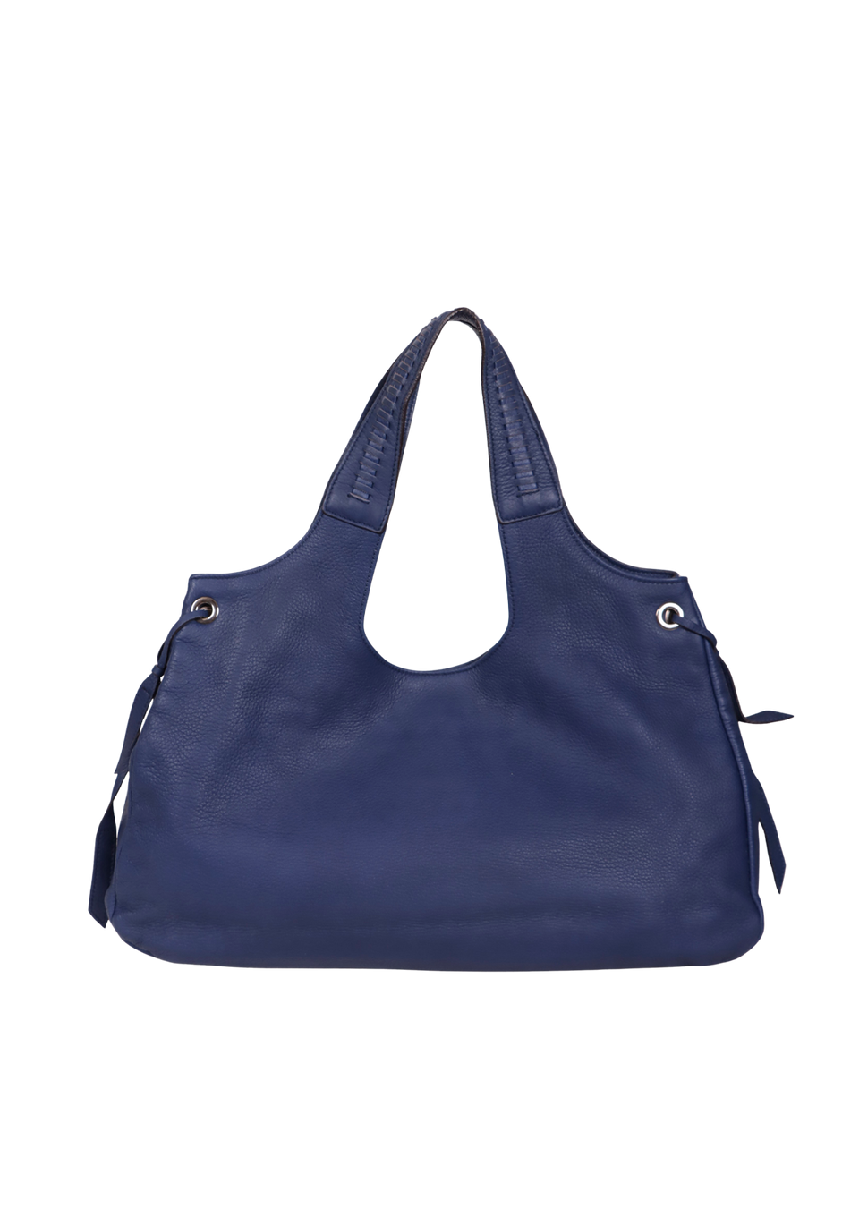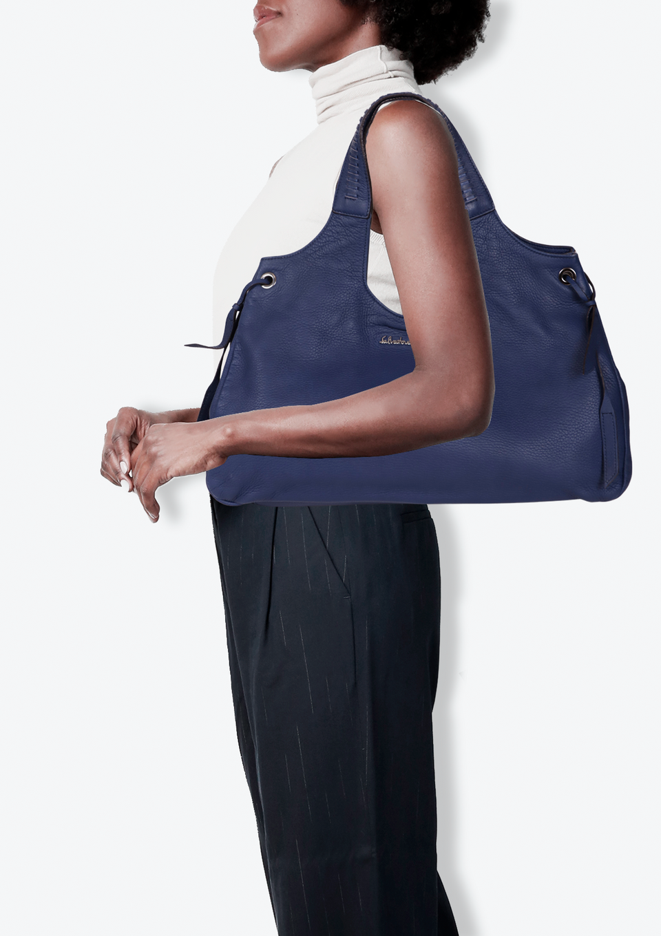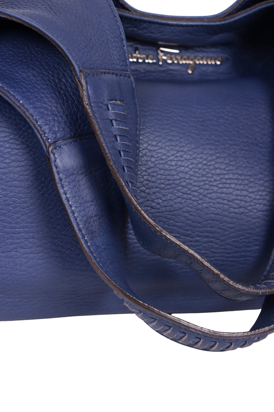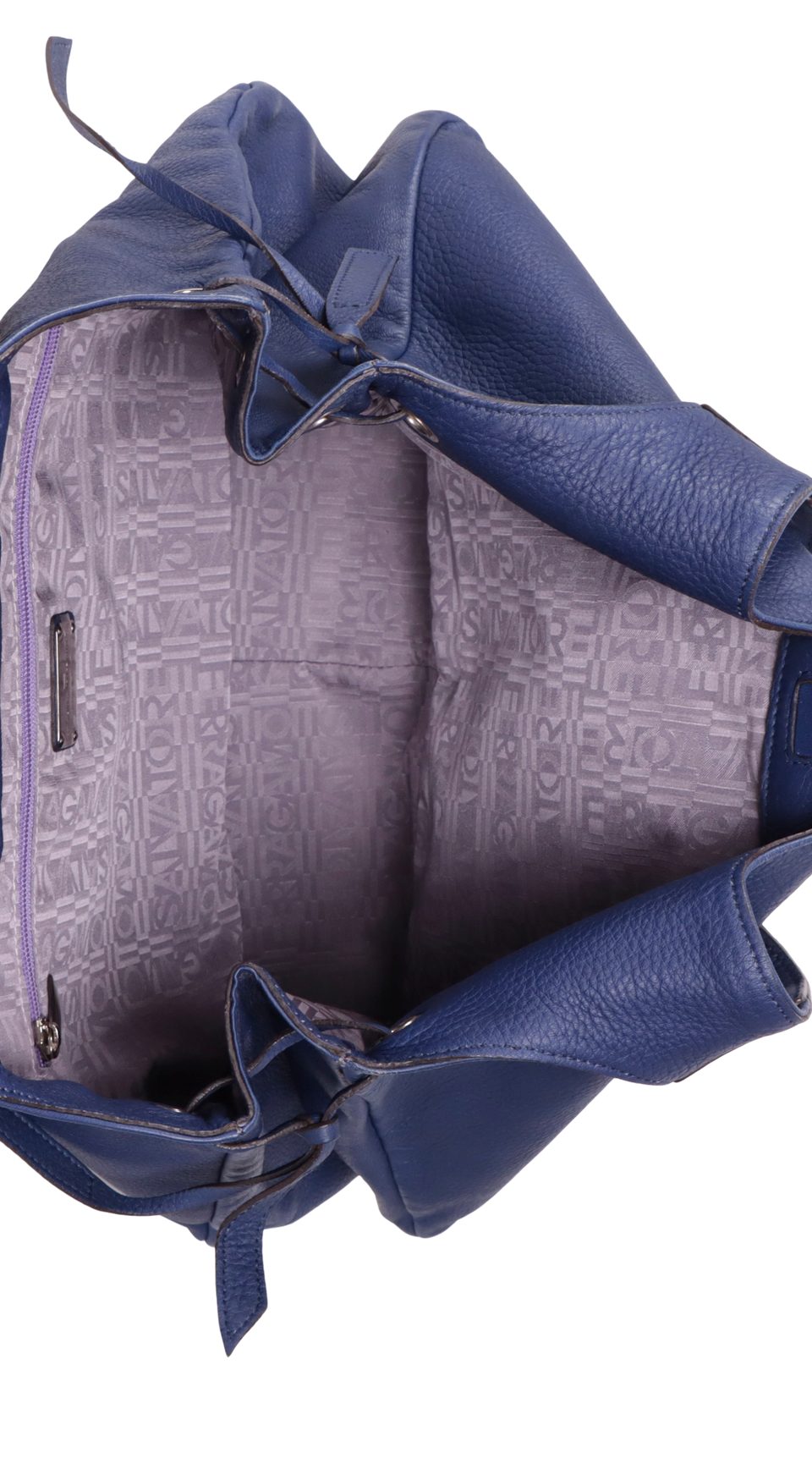 Regular. Apresenta notável deformação na estrutura, especialmente nas laterais e alças de ombro, consideráveis desgastes e manchas escurecidas pelo couro, principalmente nas extremidades e parte central frontal, severas fissuras e desgastes nas selagens das alças, couro consideravelmente ressecado e notável odor característico de item guardado no forro.