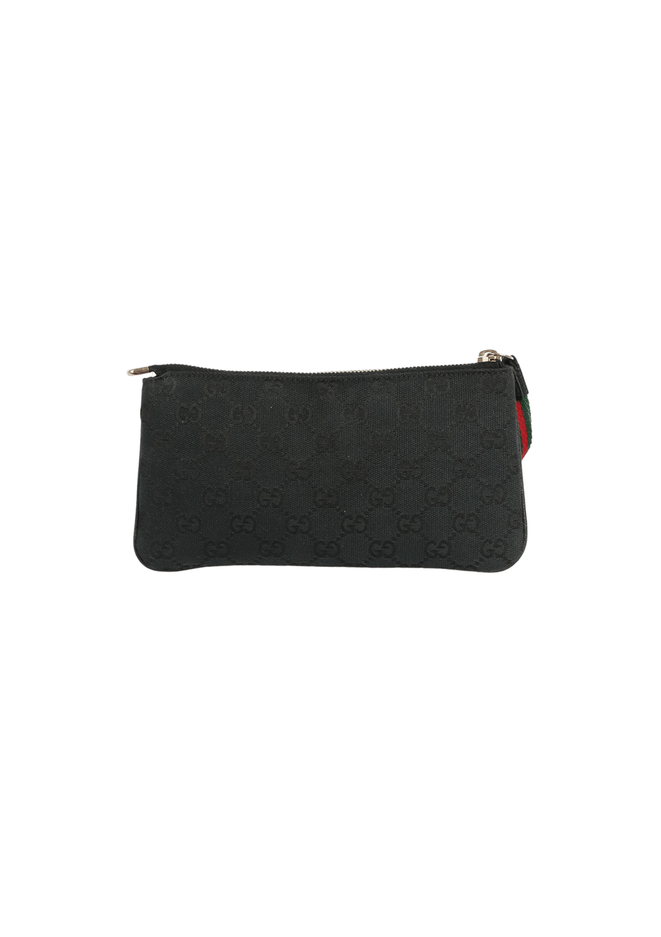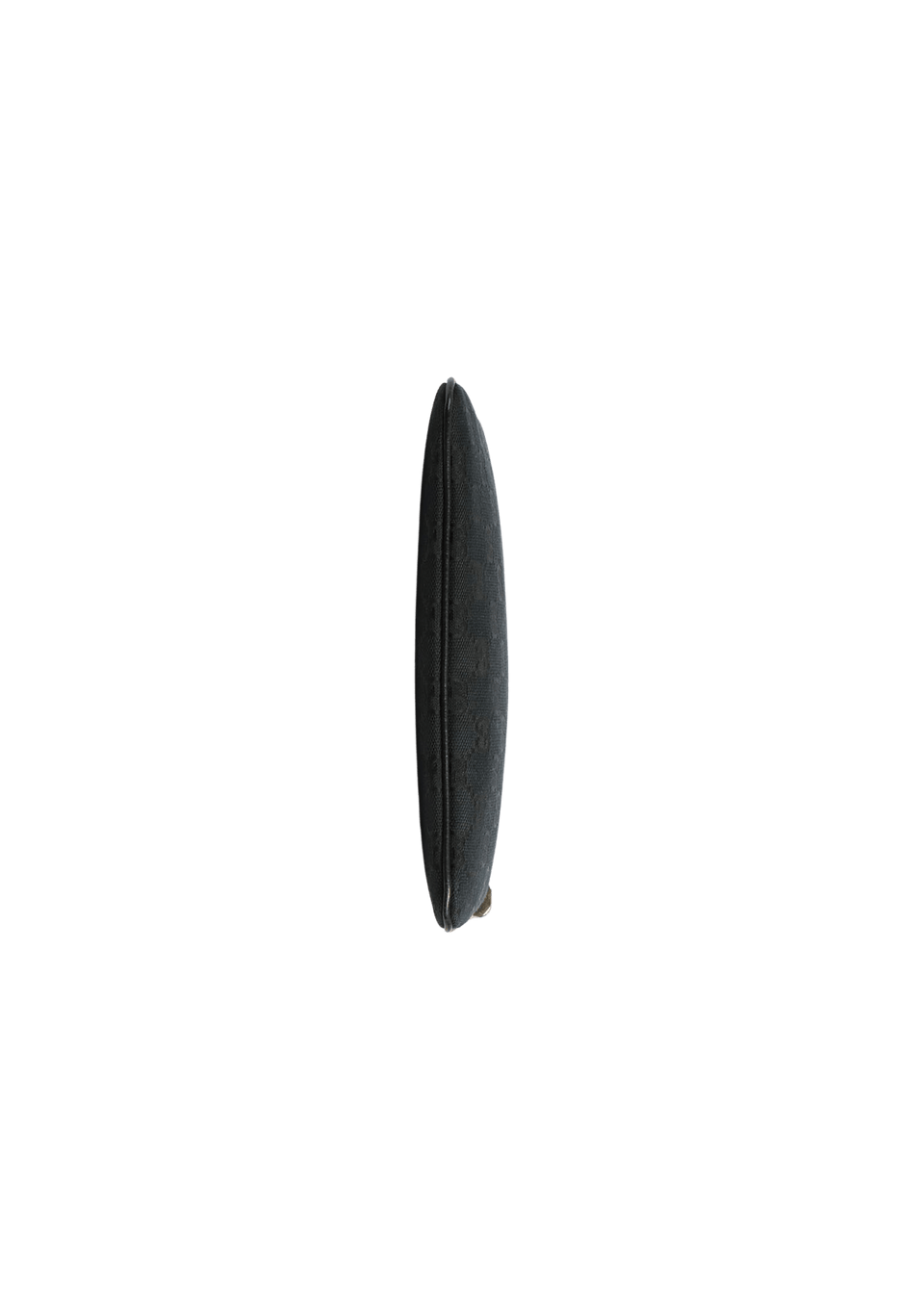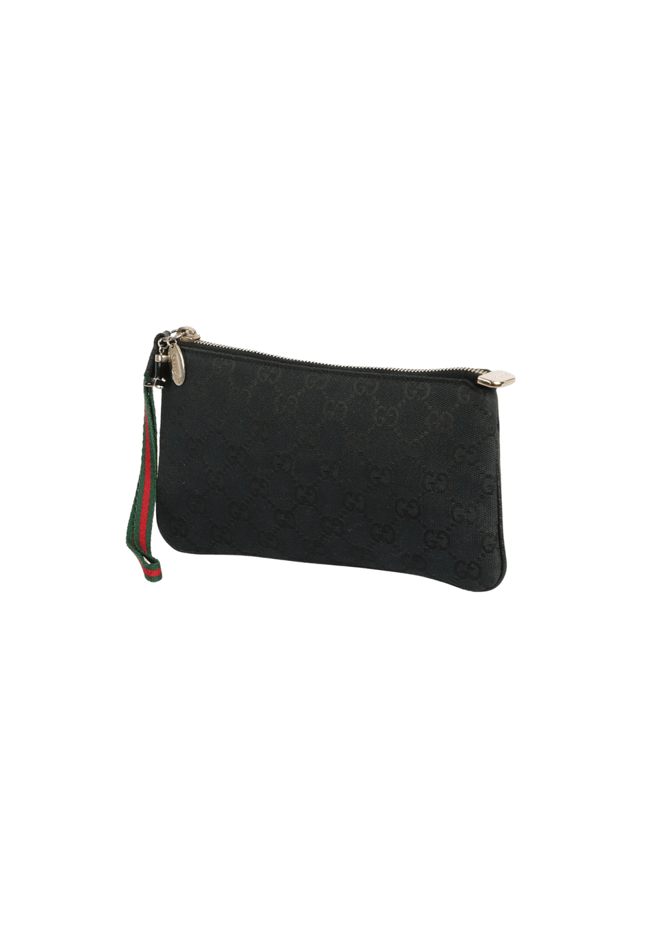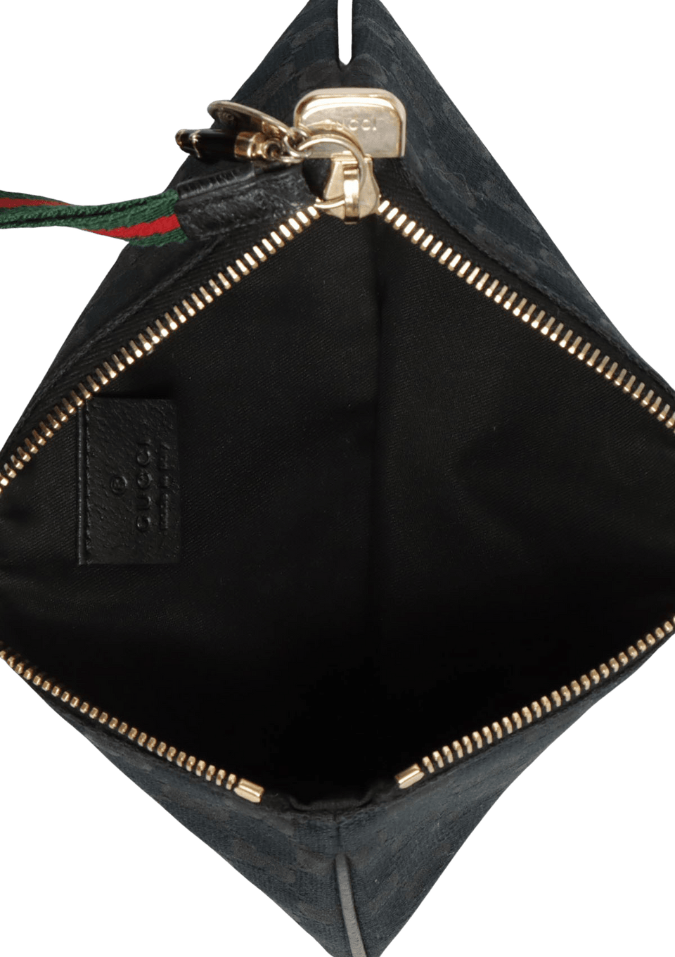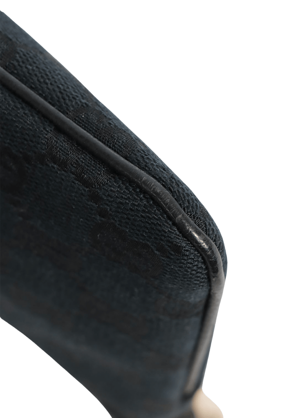 - Canvas GG azul, couro calfskin preto e detalhe em faixa Web;