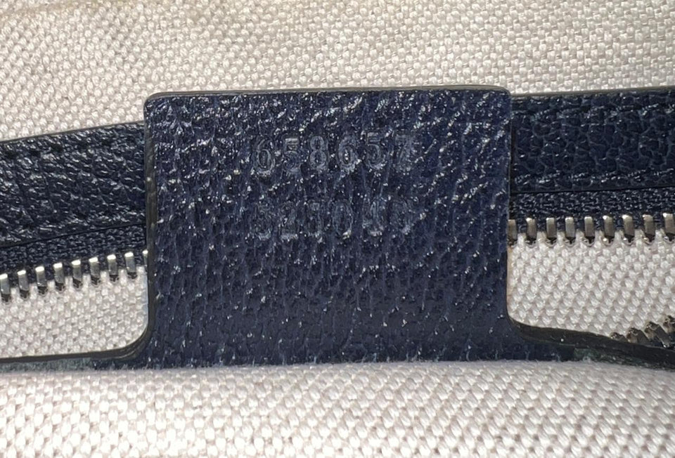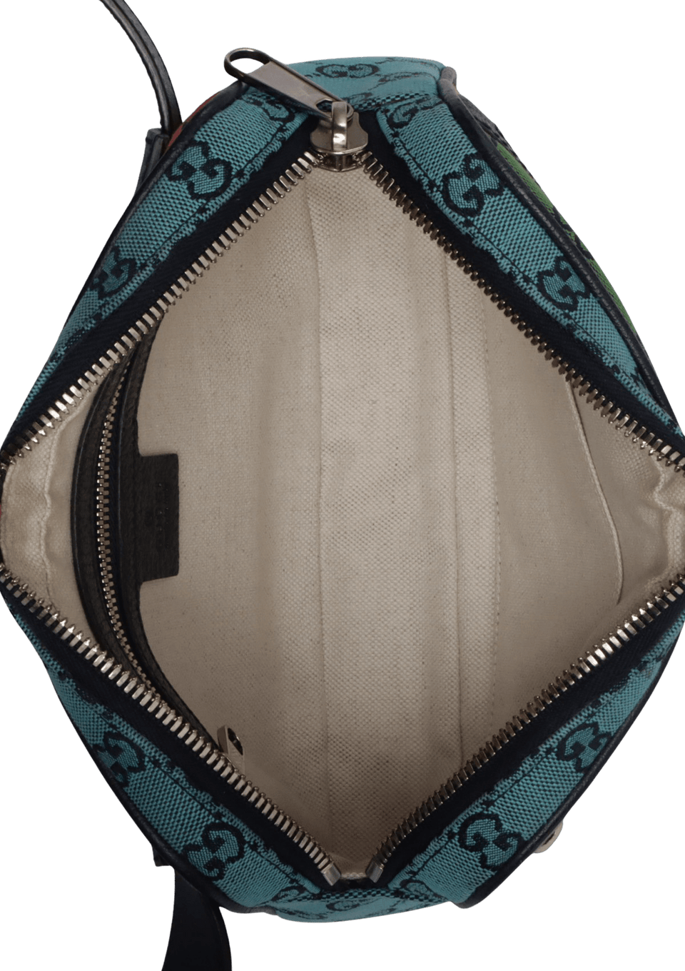- Canvas GG Multicolor e detalhes em couro calfskin azul;
