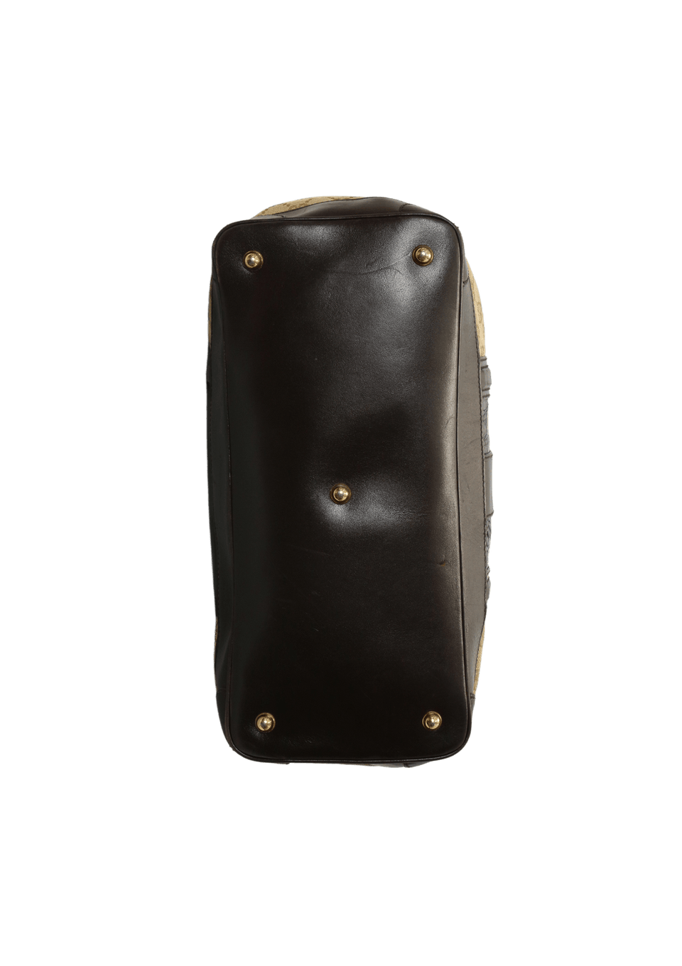 Condição: Bom, com aparência de usado. Couro externo com risco, desgaste dos quatro cantos base, desgaste no acabamento, manchas no couro externo, bolsa perdeu o formato original, ferragem com risco e oxidada.
