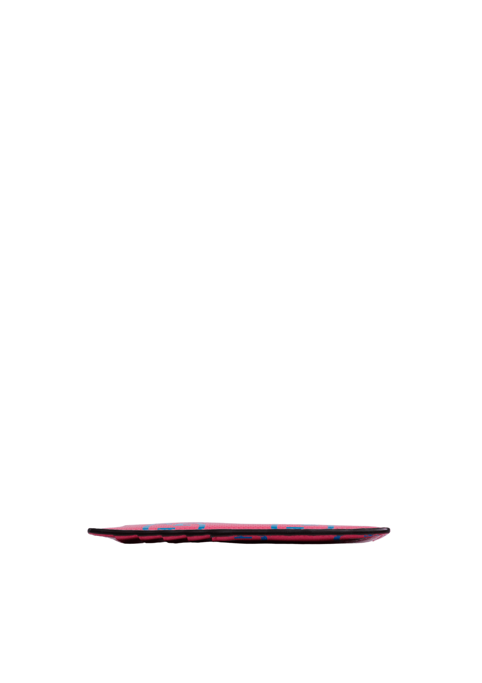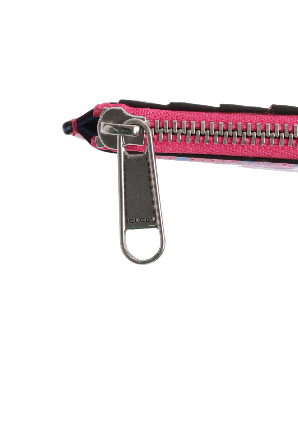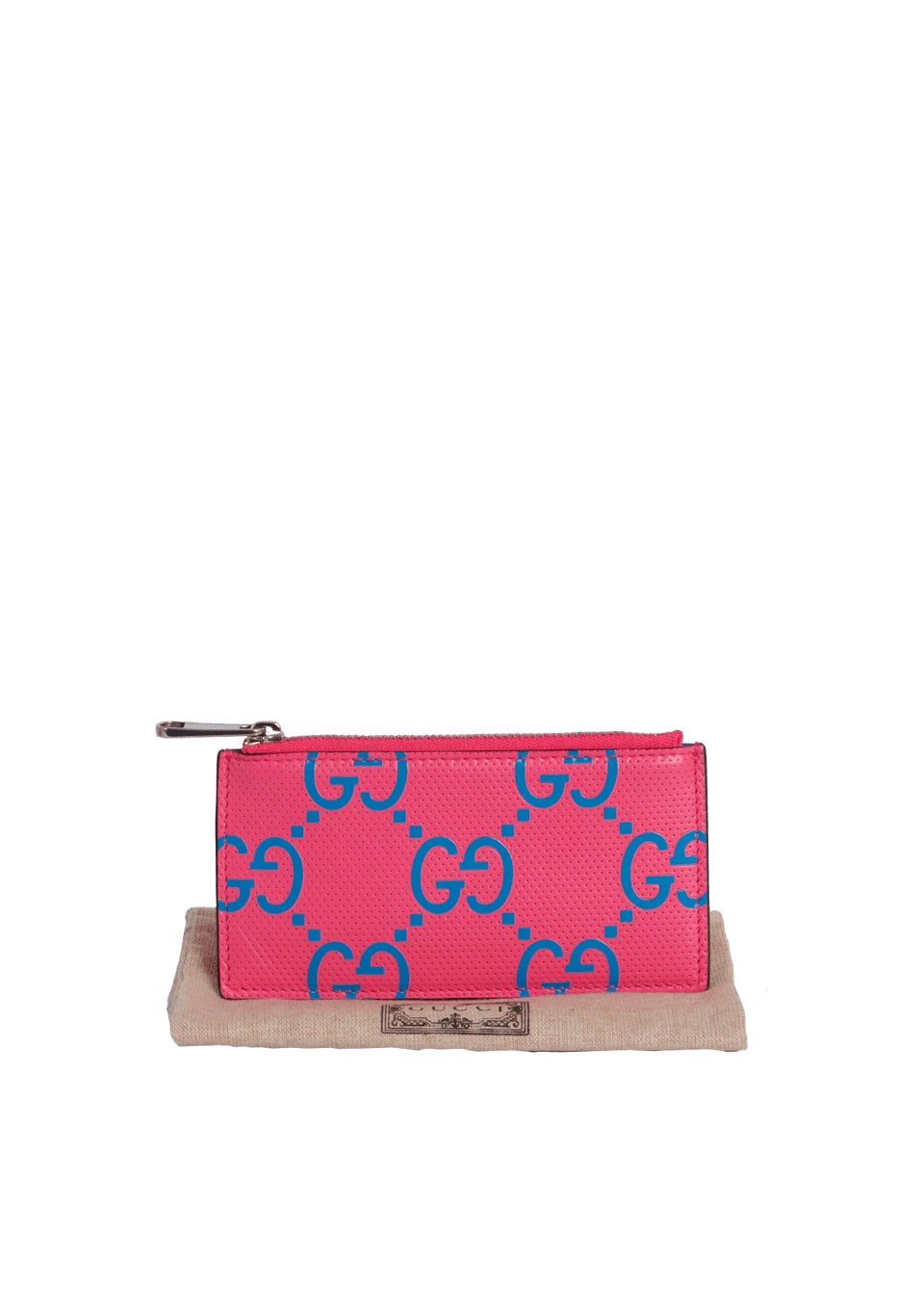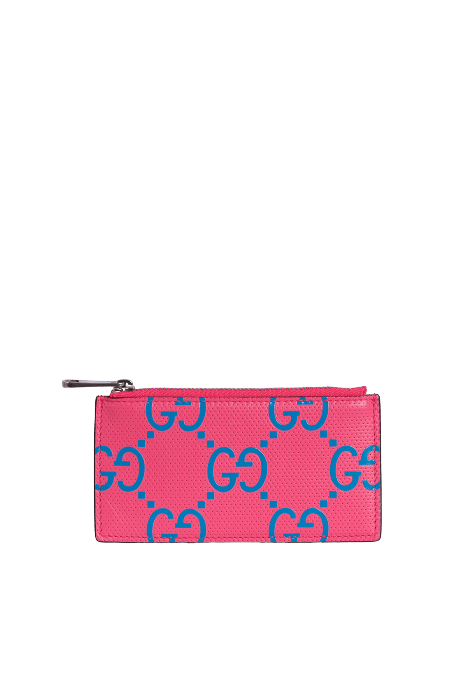 - Couro calfskin rosa com acabamento GG Embossed azul;