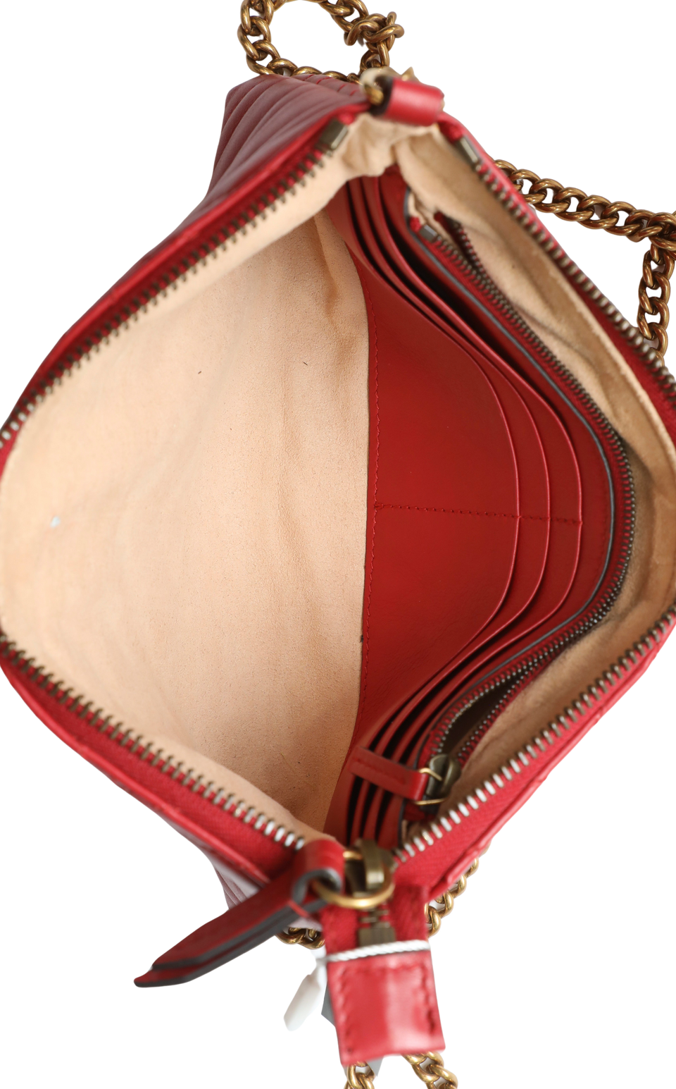 Descrição do Material: Couro calfskin vermelho com acabamento matelassê chevron