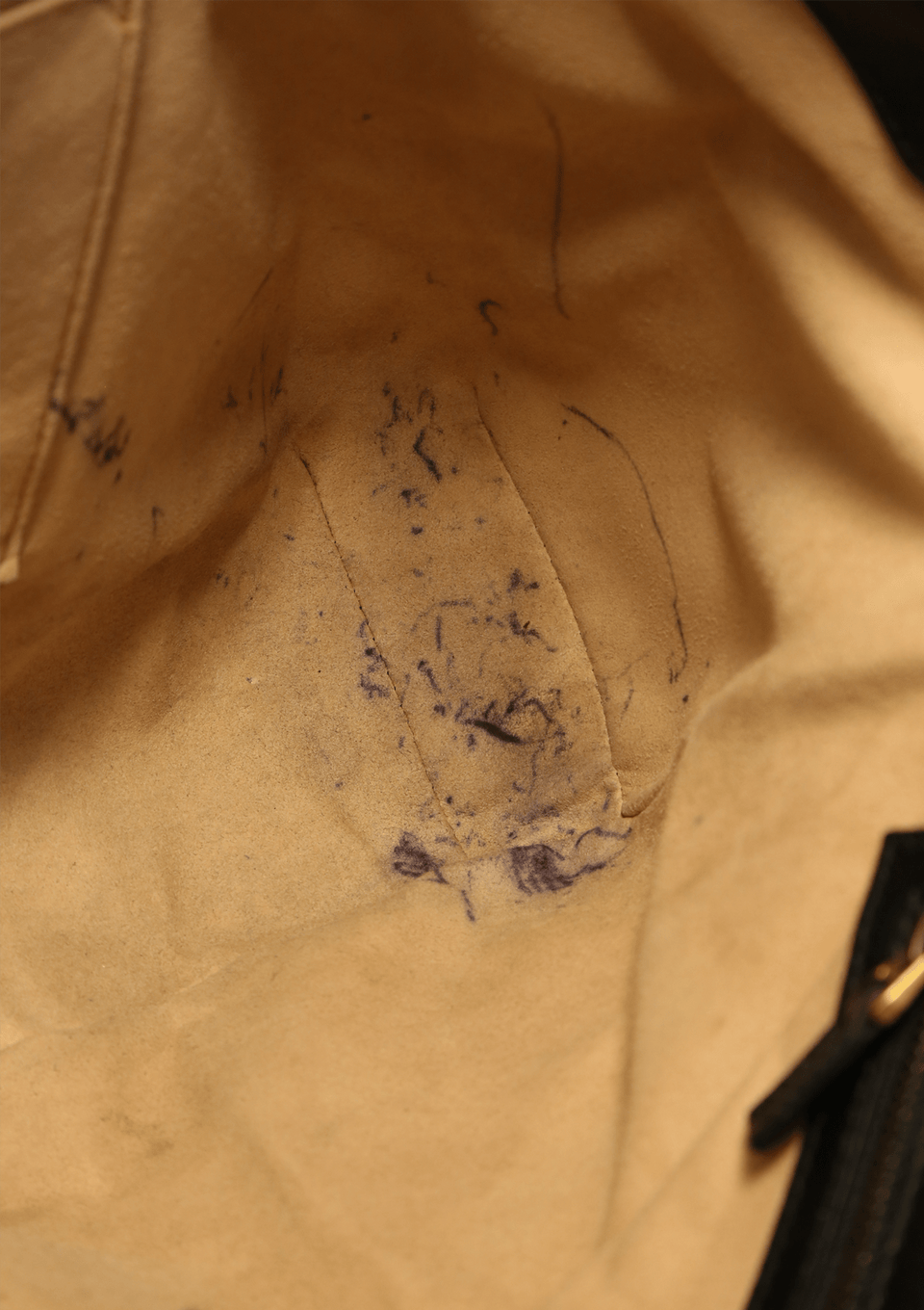 Condição: Bom, com aparência de usado. Apresenta ilhós solto na parte traseira do lado direito, manchas no forro, manchas esbranquiçadas na parte frontal e lado interno da aba, desgastes nas ferragens e extremidades da base.