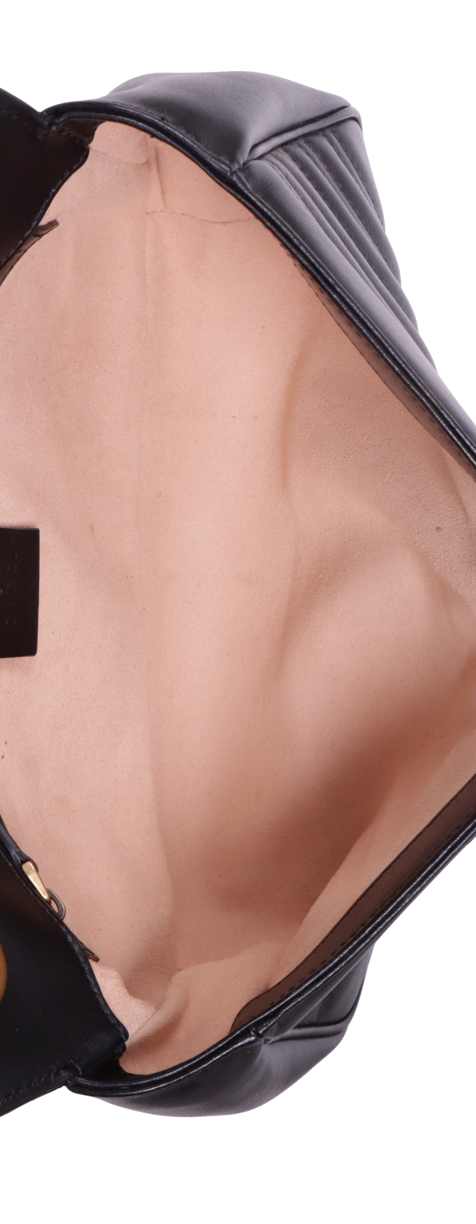 Descrição do Material: Couro calfskin preto e acabamento matelassê chevron