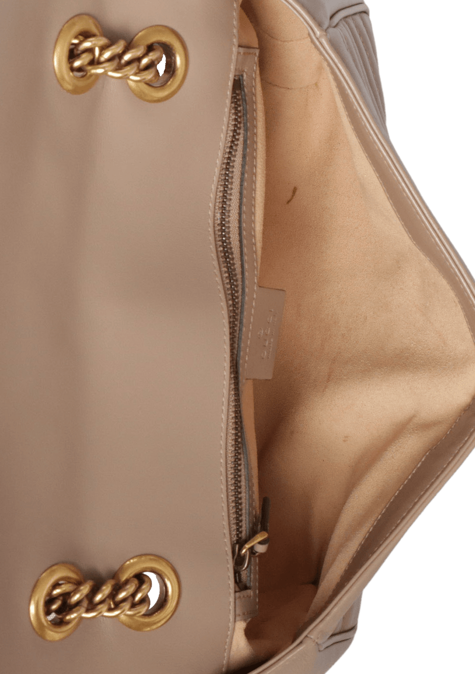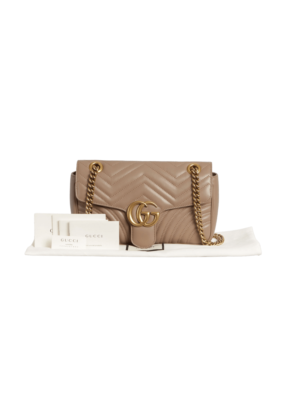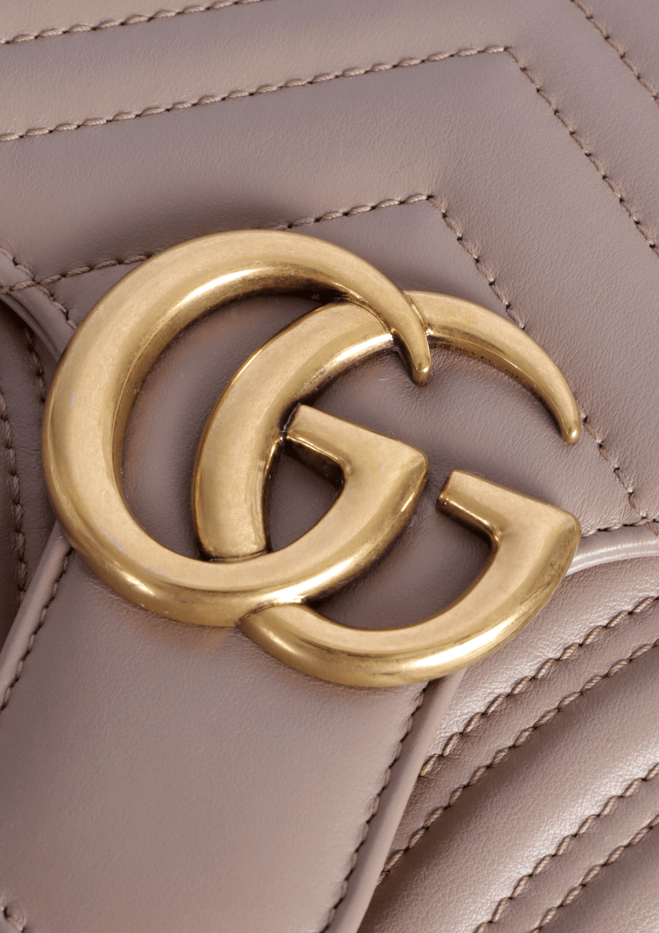 - Couro calfskin rosa com acabamento matelassê Marmont;