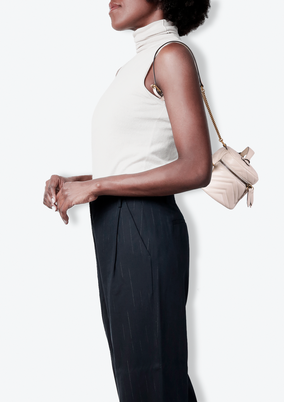 Descrição do Material: Couro calfskin branco com acabamento matelassê chevron