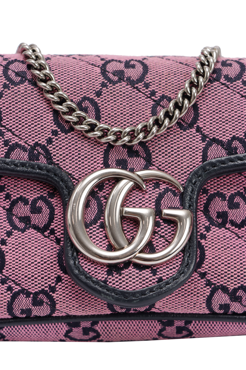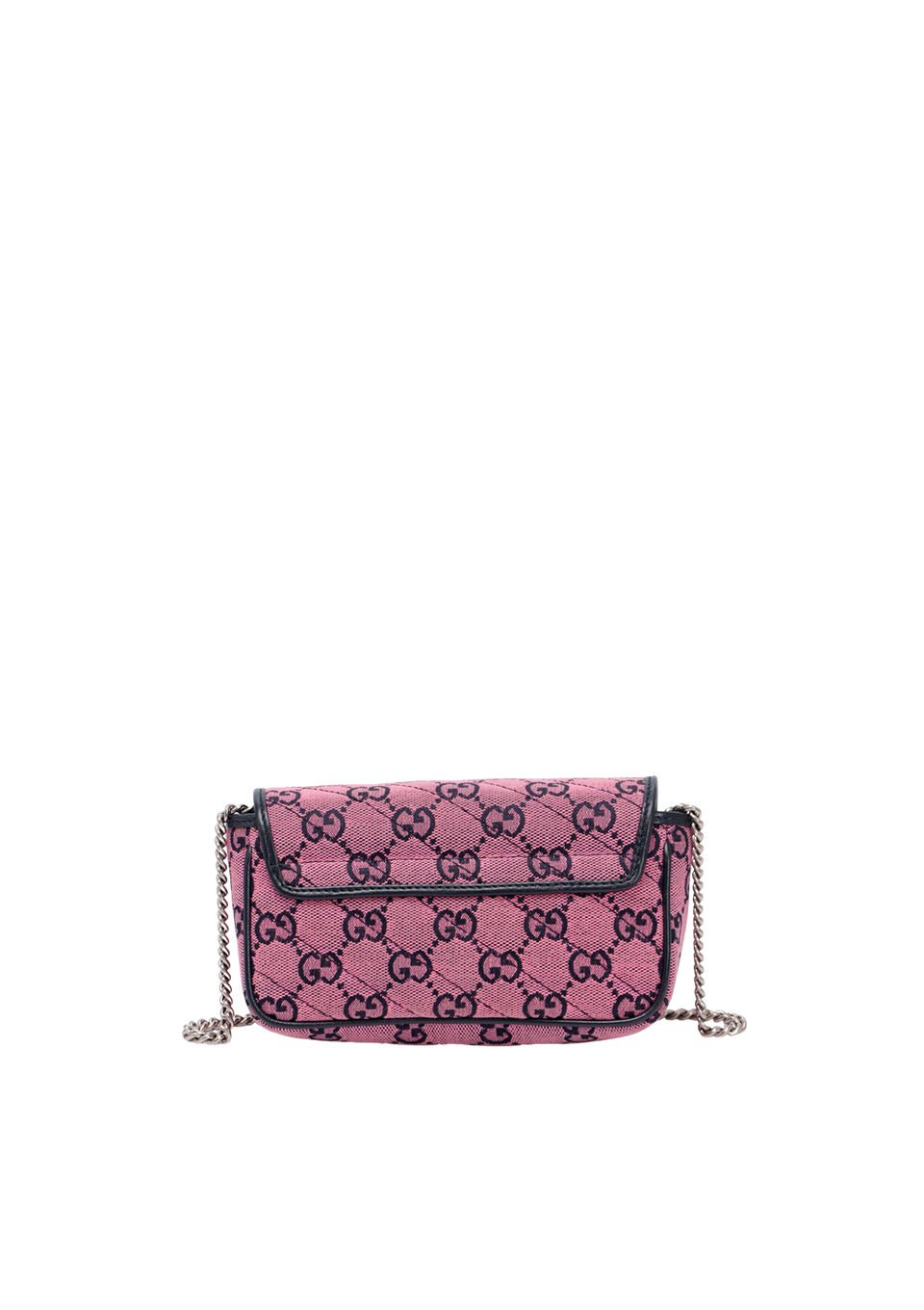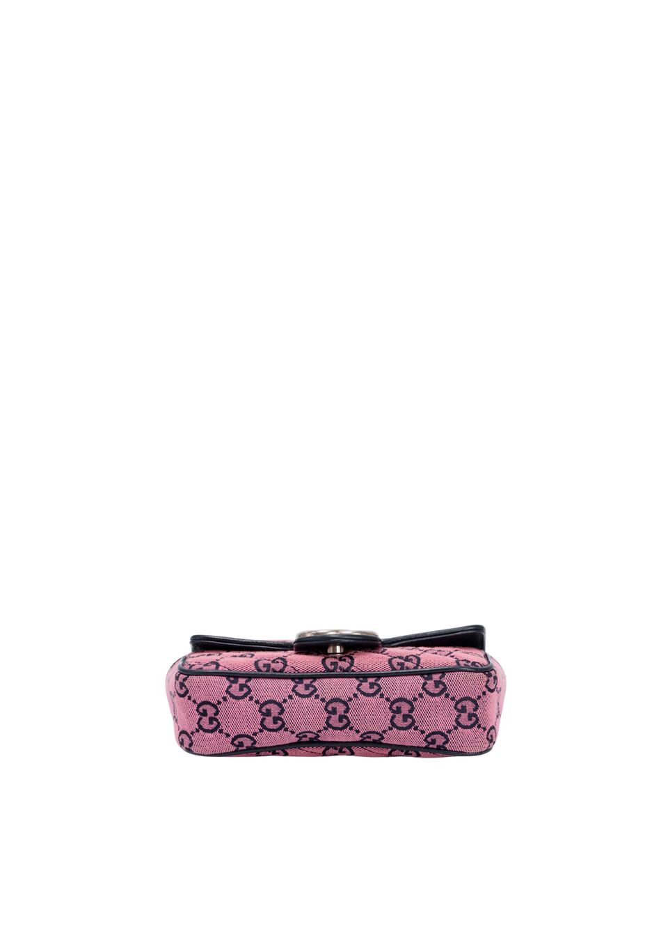 Descrição do Material: Canvas GG rosa com detalhes em couro calfskin azul