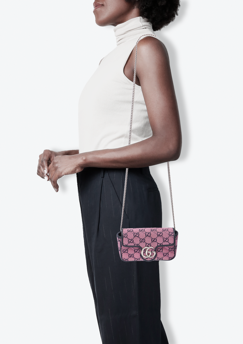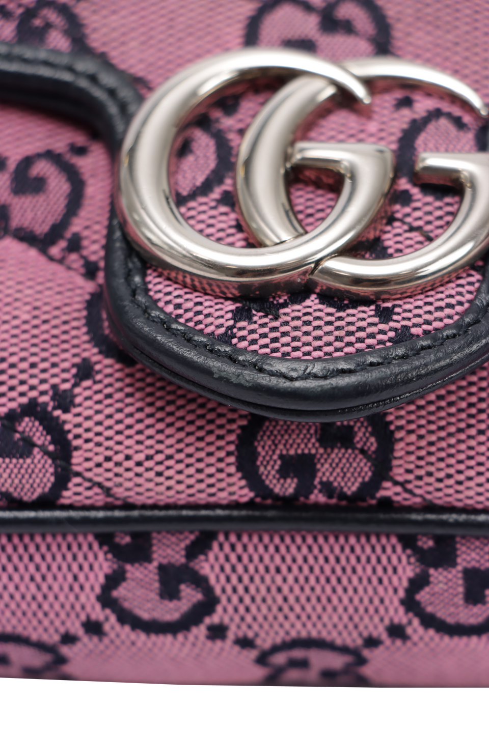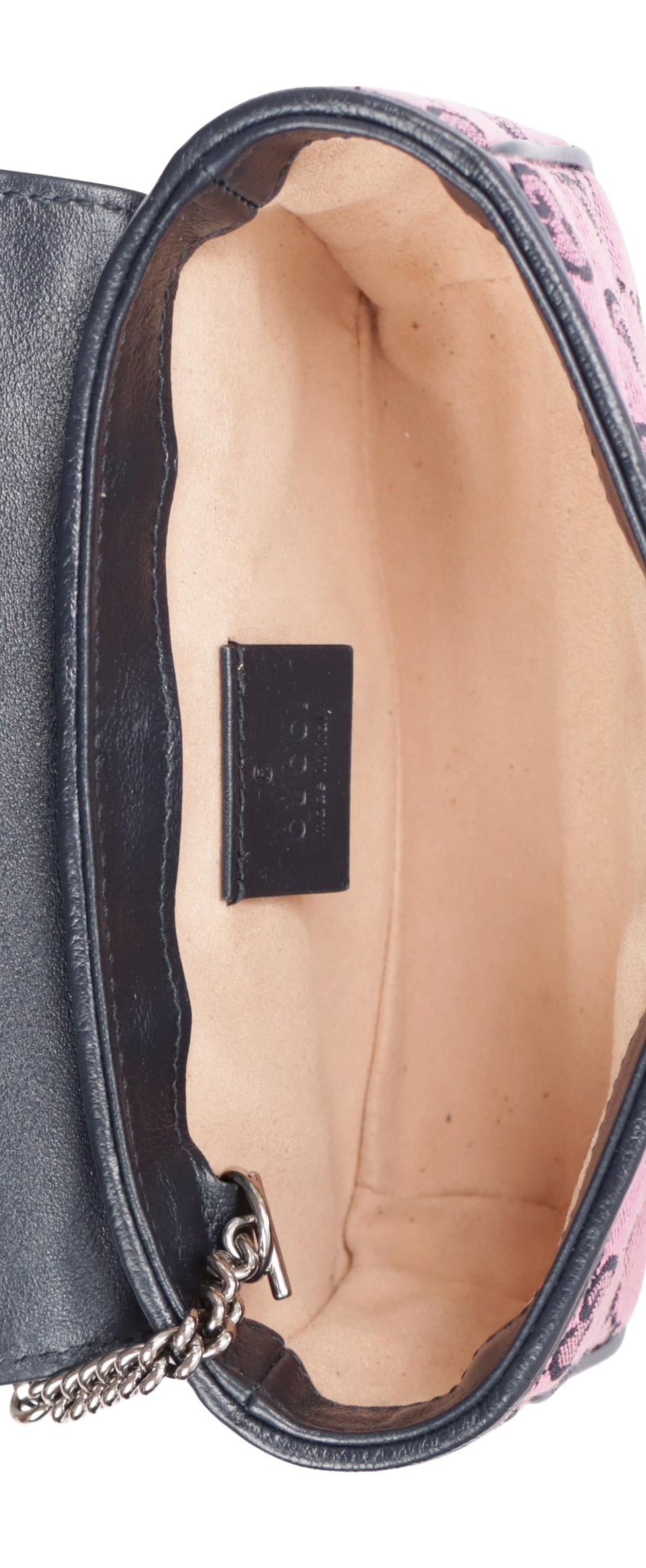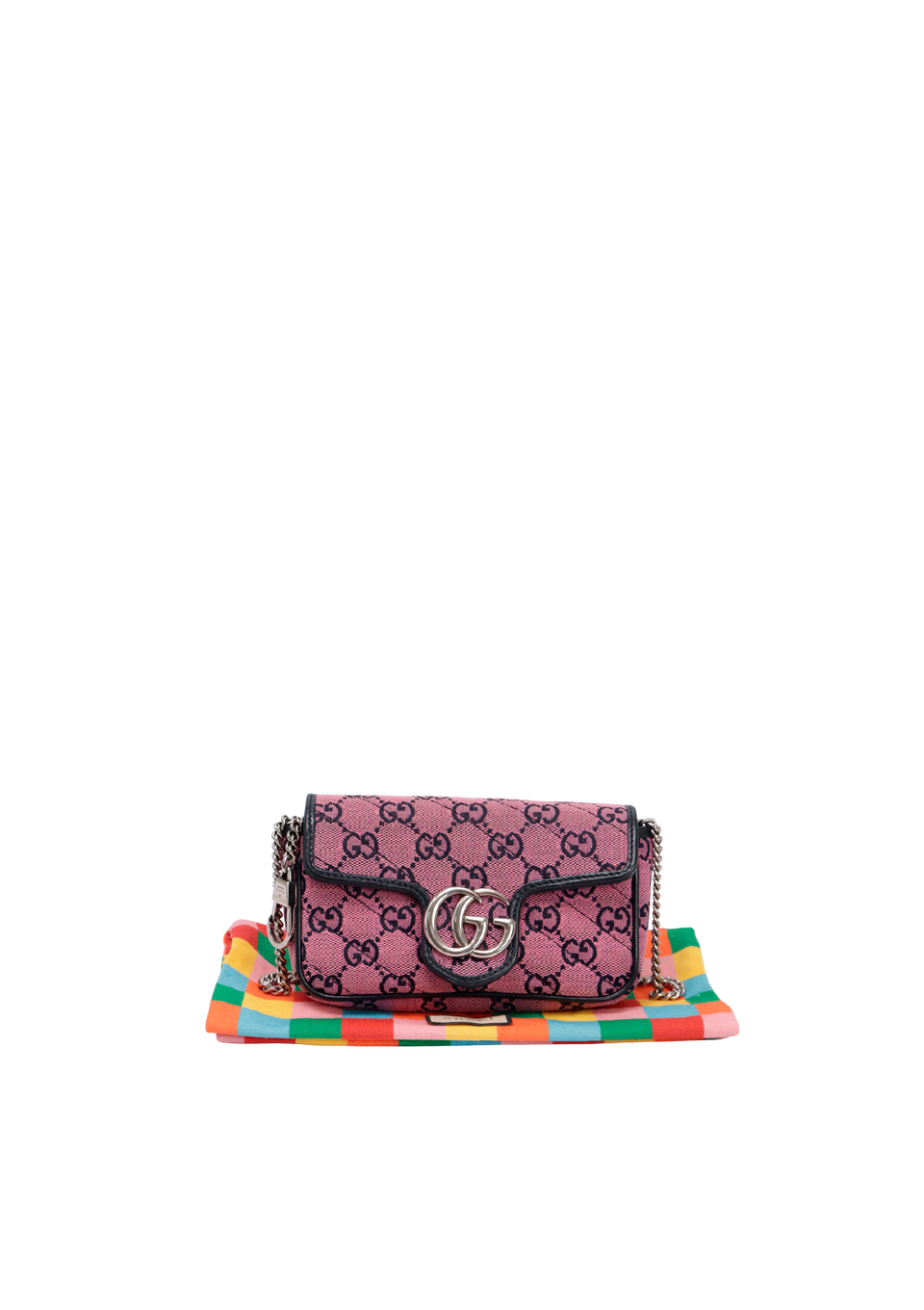 Descrição do Material: Canvas GG rosa com detalhes em couro calfskin azul