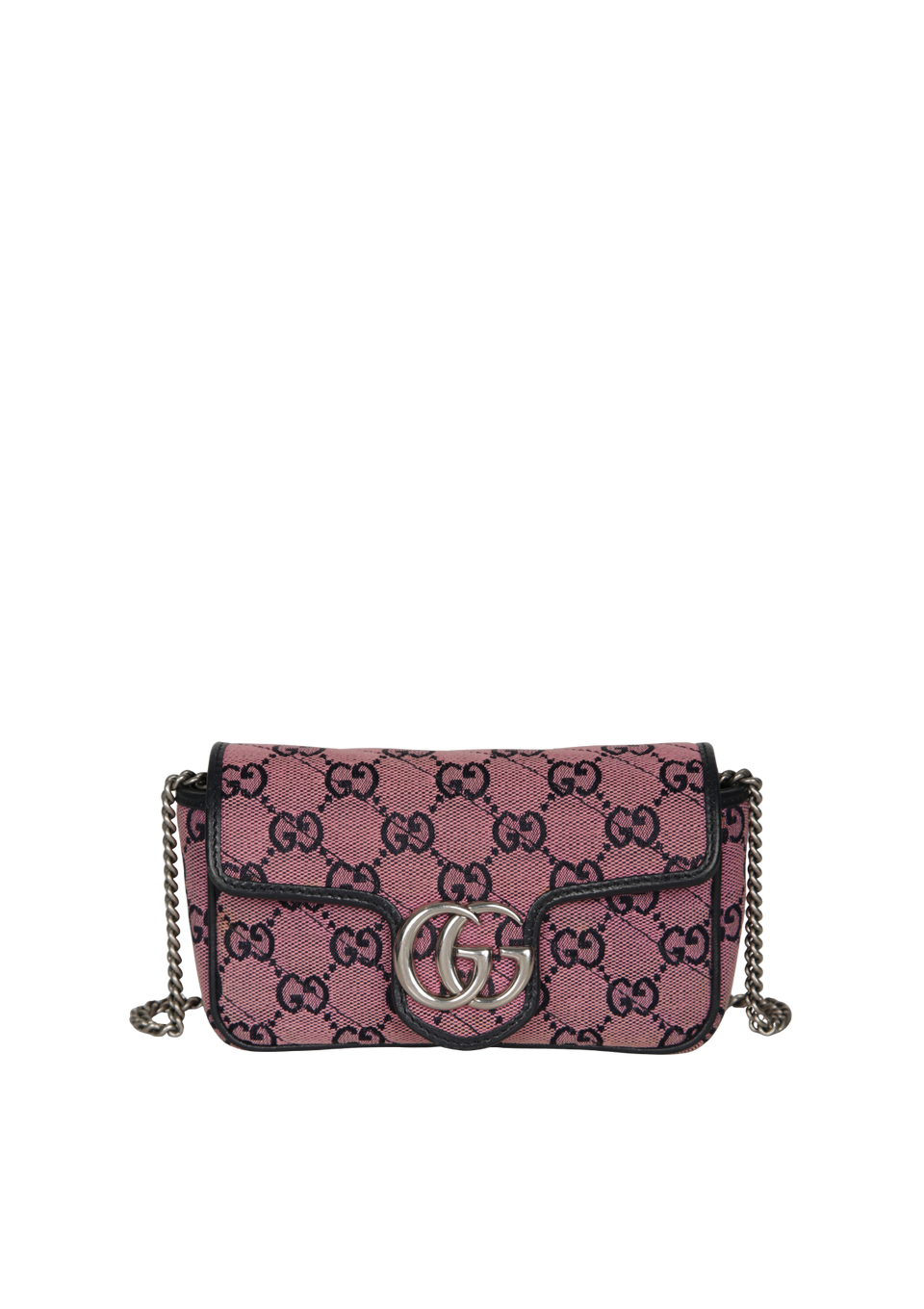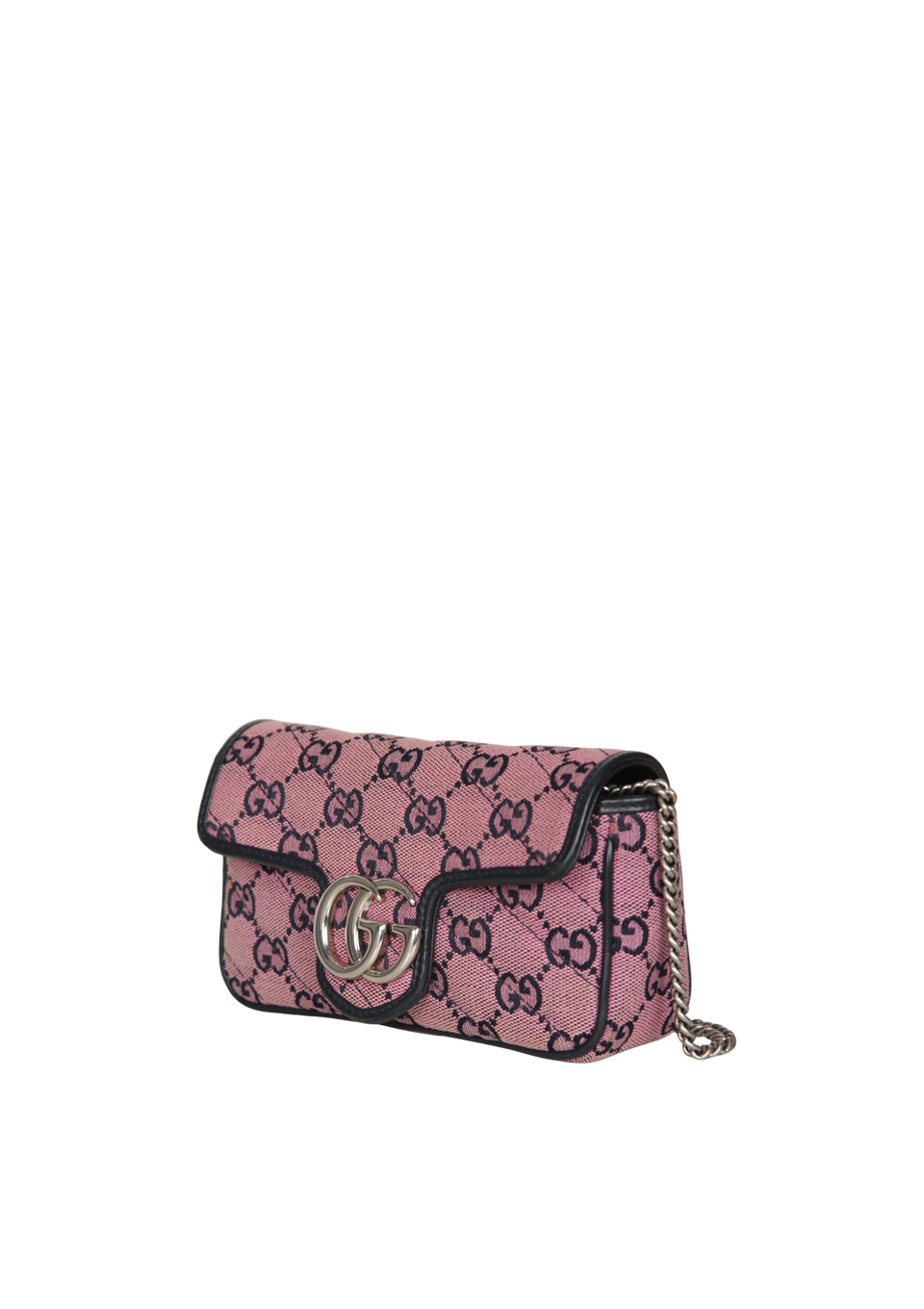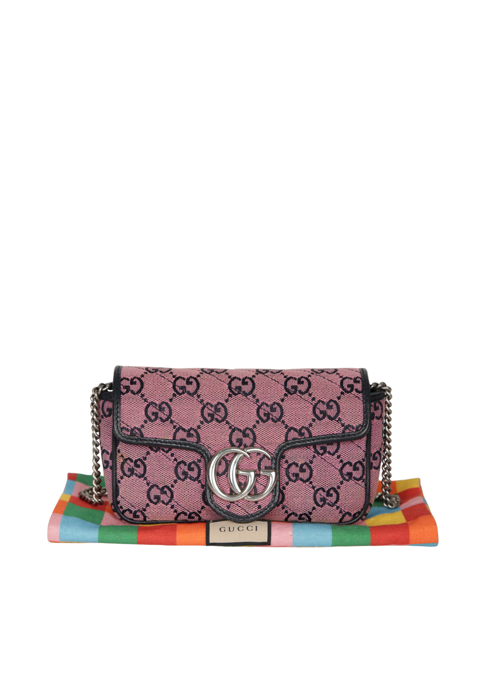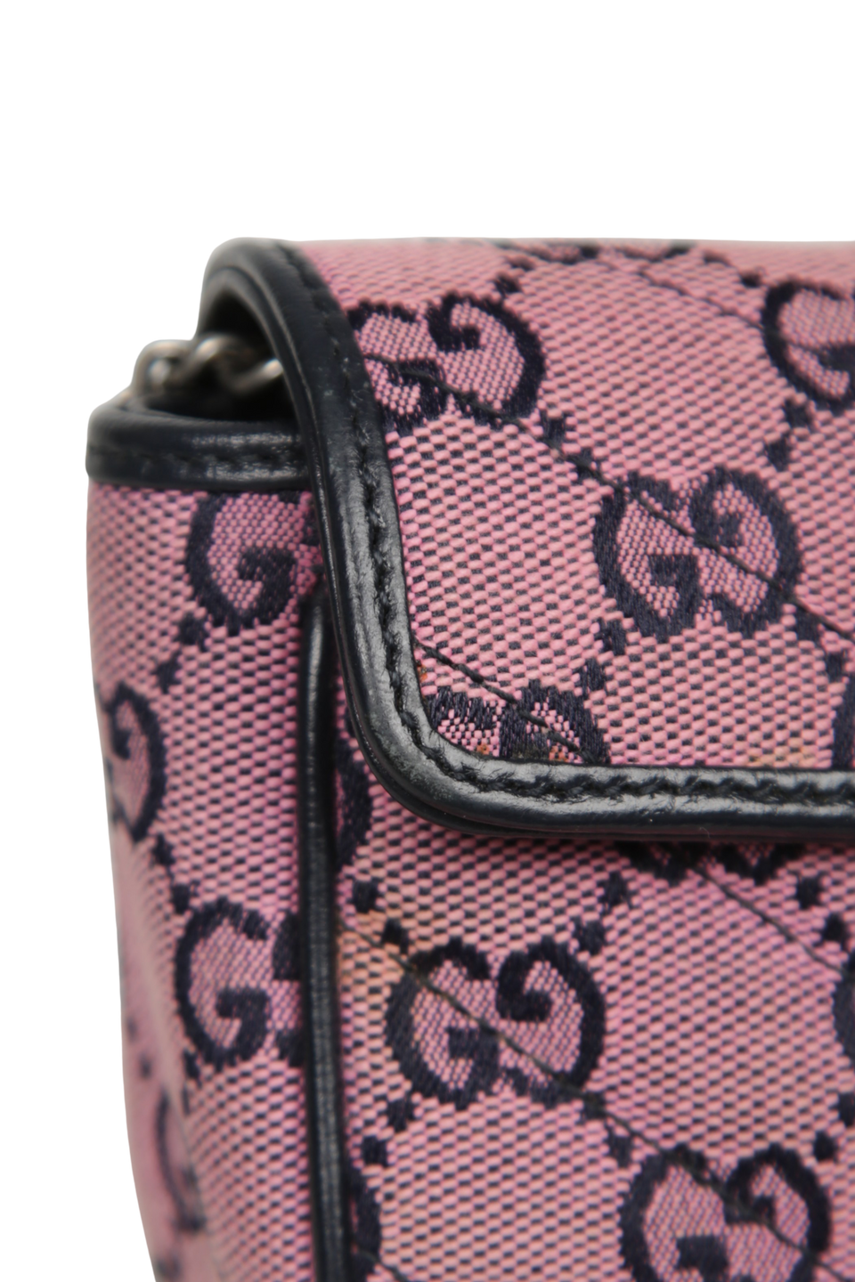 Descrição do Material: Canvas GG rosa com detalhes em couro calfskin azul