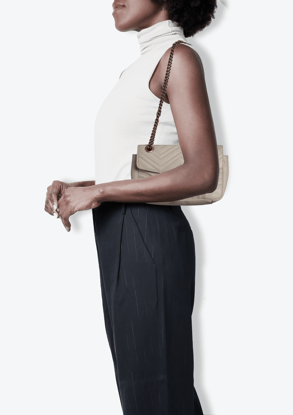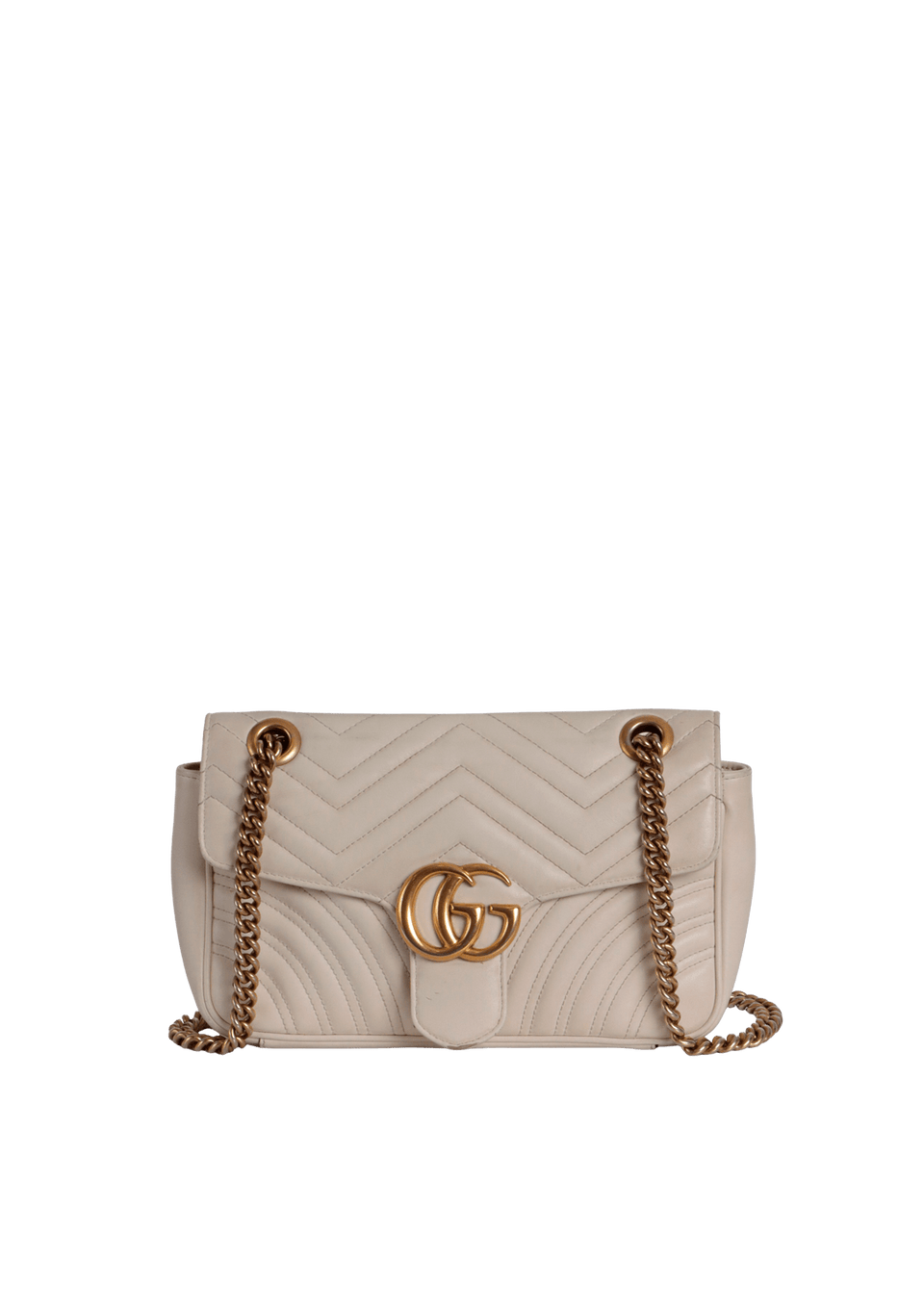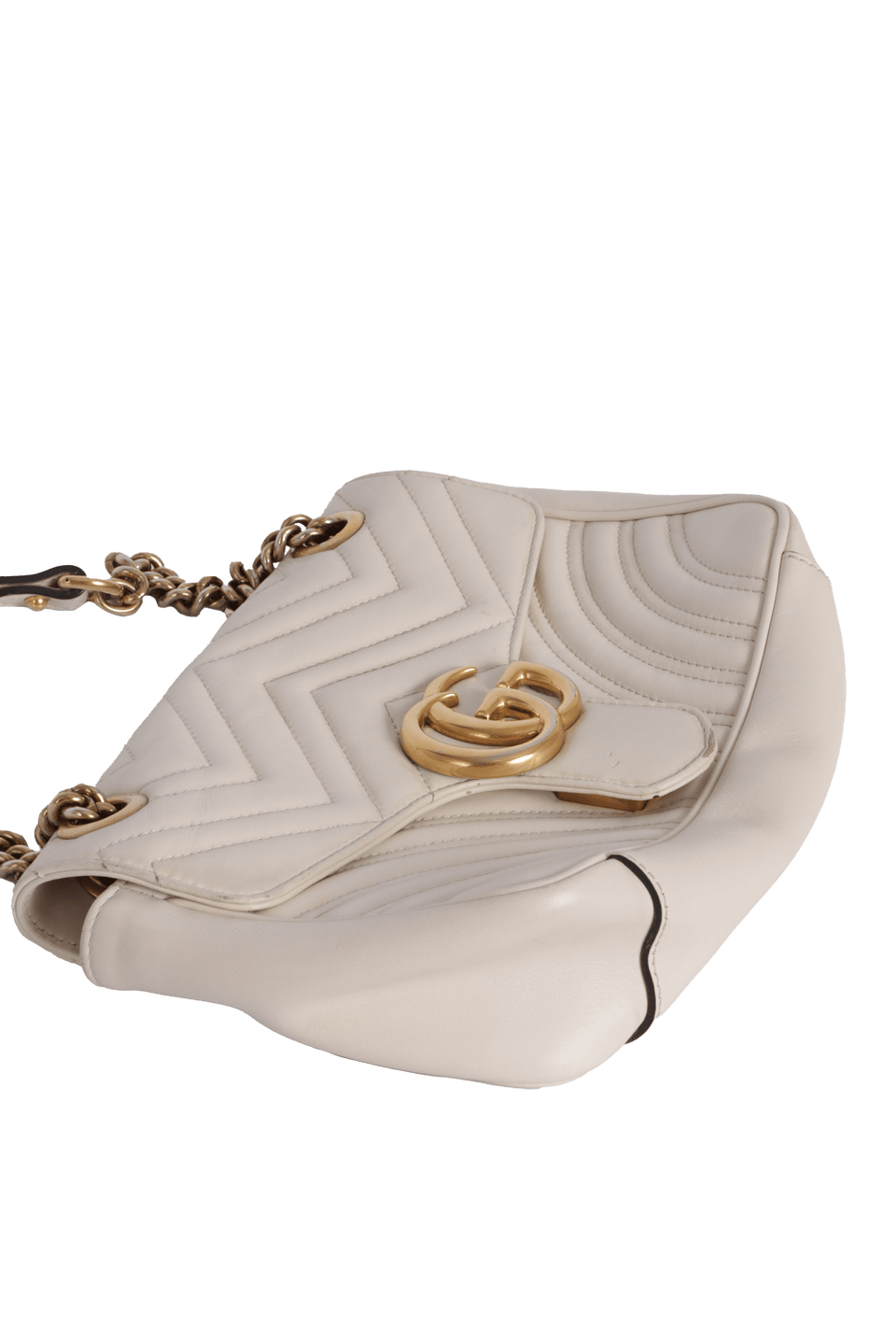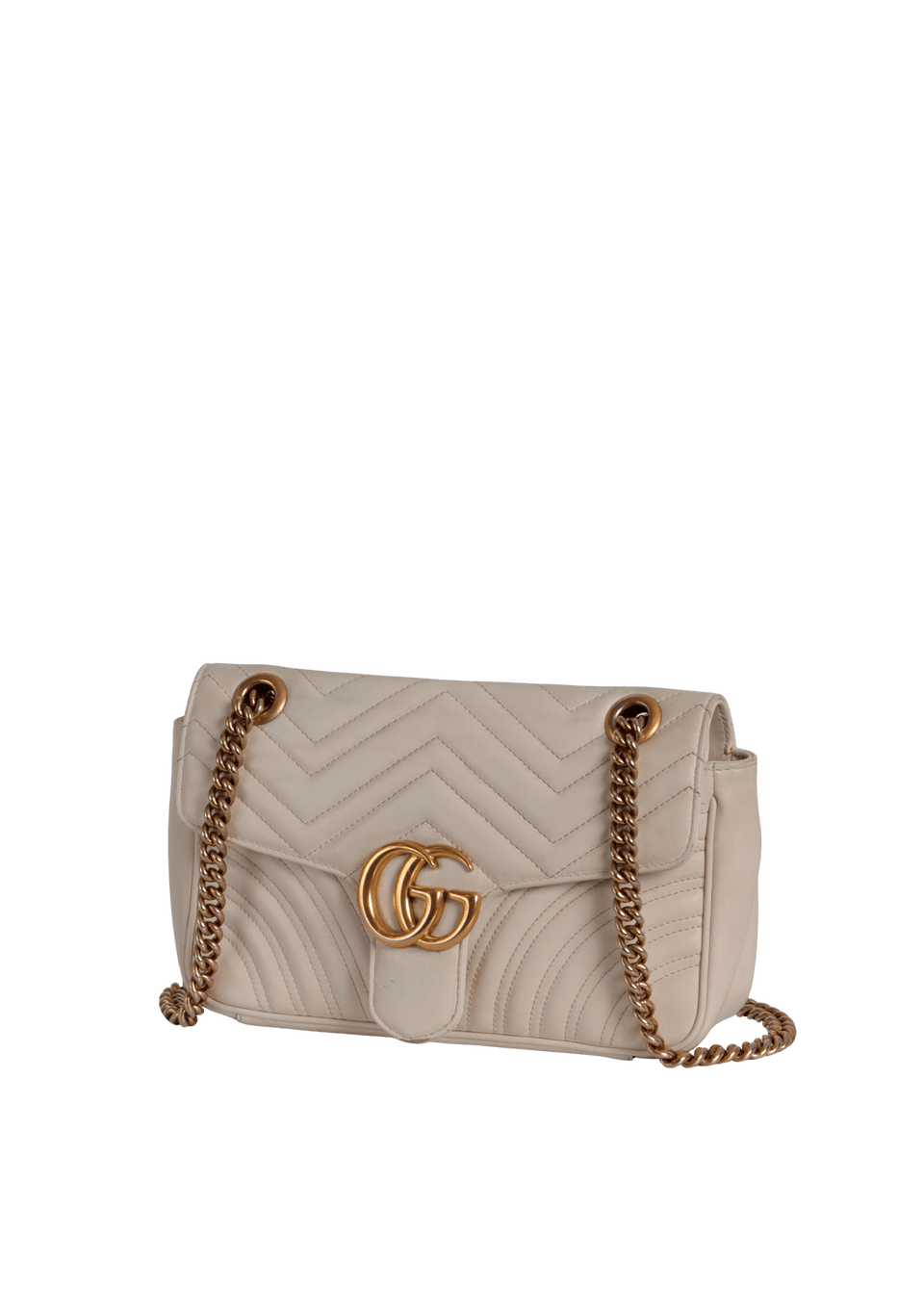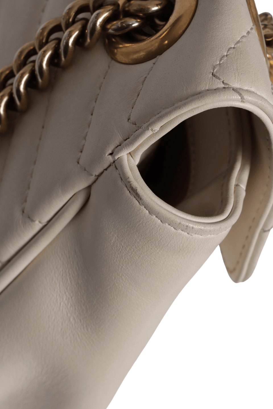 - Couro calfskin off white com acabamento matelassê Marmont;