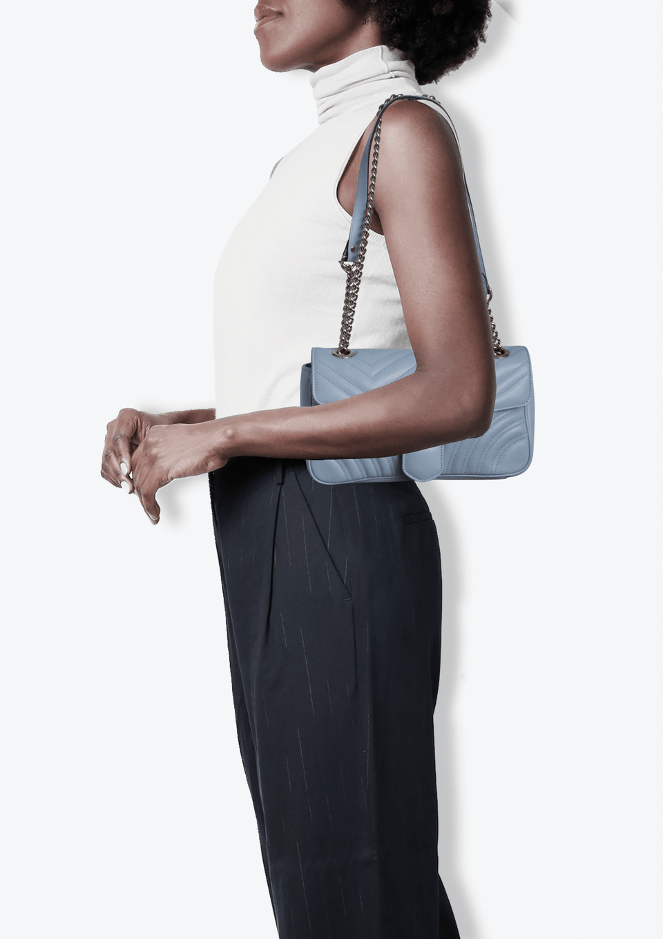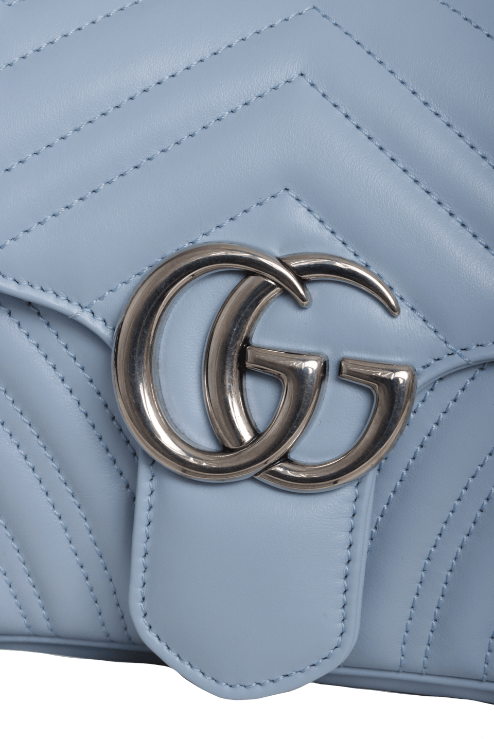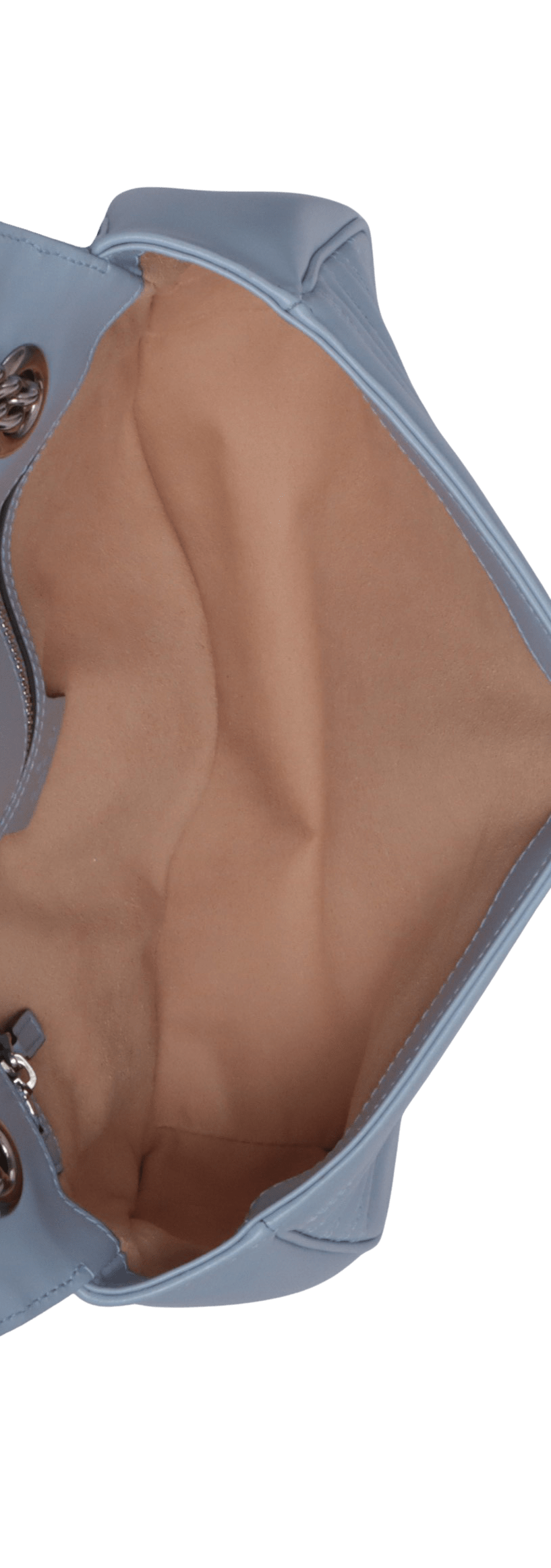 - Couro calfskin azul com acabamento matelassê;