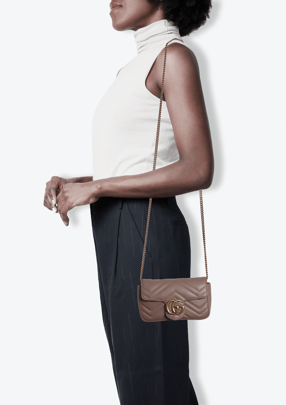 - Couro calfskin bege com acabamento matelassê Marmont;