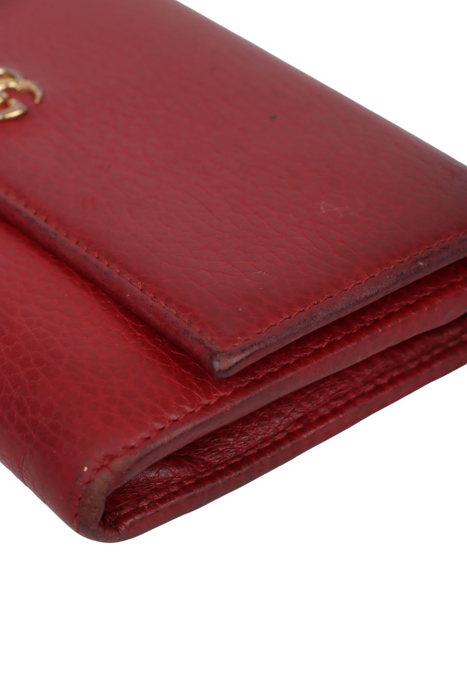Regular. Apresenta severas manchas escurecidas, marcas de uso e desgastes pelo couro, especialmente nas extremidades da aba, na parte superior, nas laterais da base e nas laterais da parte de trás, consideráveis descolorações, oxidações e marcas de uso nas ferragens da logo frontal, no puxador do cursor interno e no botão de pressão e notáveis desgastes, manchas e marcas de uso pela parte interna.