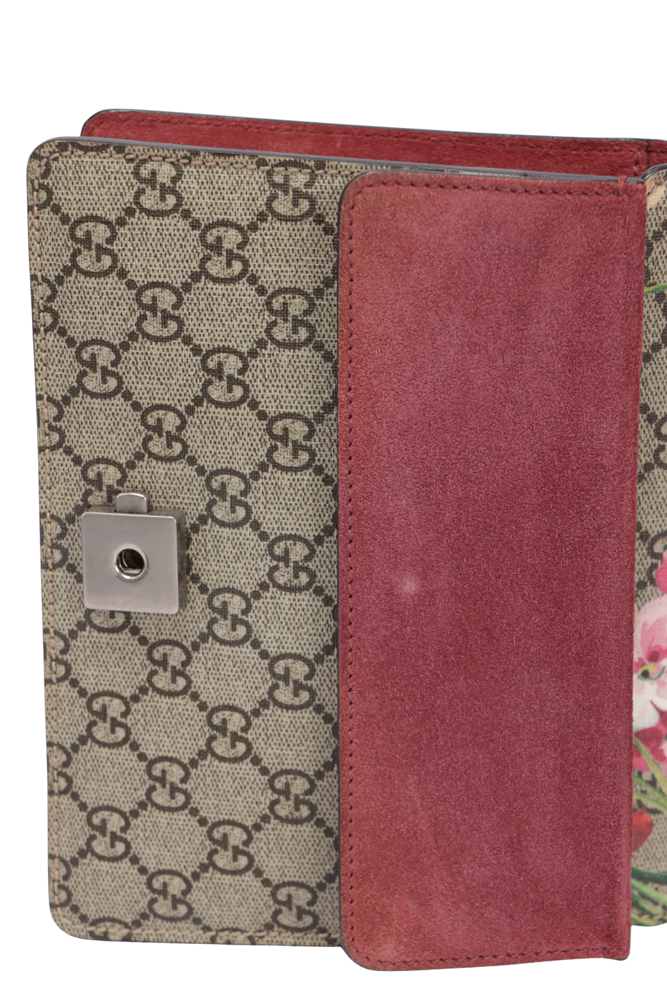 Descrição do Material: Canvas GG Supreme Blooms com detalhes em camurça bordô
