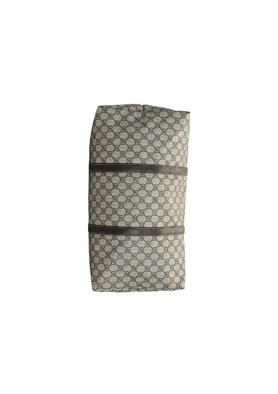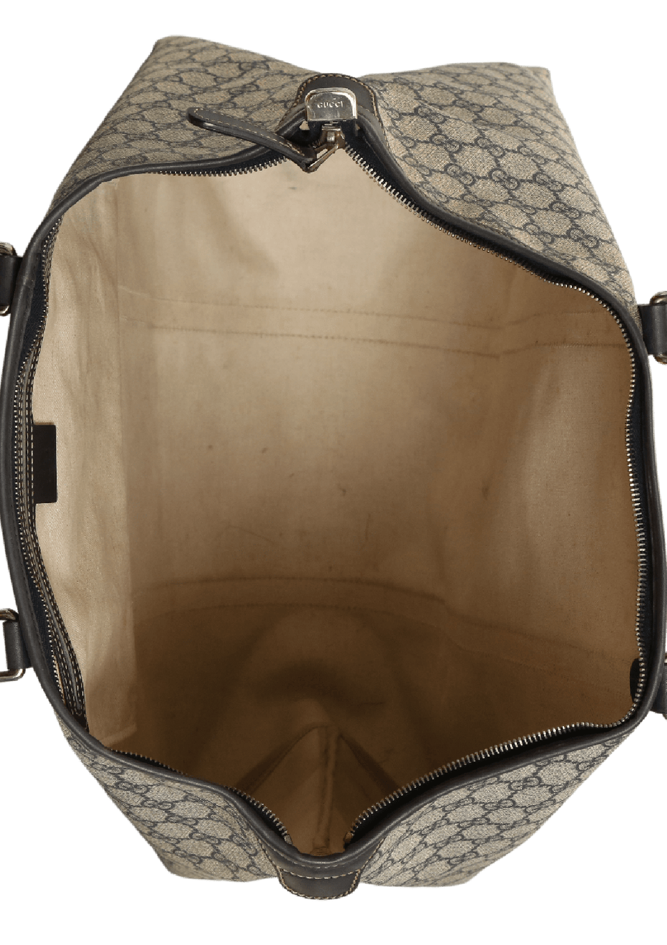 Condição: Bom, com aparência de usado. Apresenta pequeno desgaste na extremidade esquerda, riscos nas ferragens, pequenas marcas nas alças e manchas no interior.