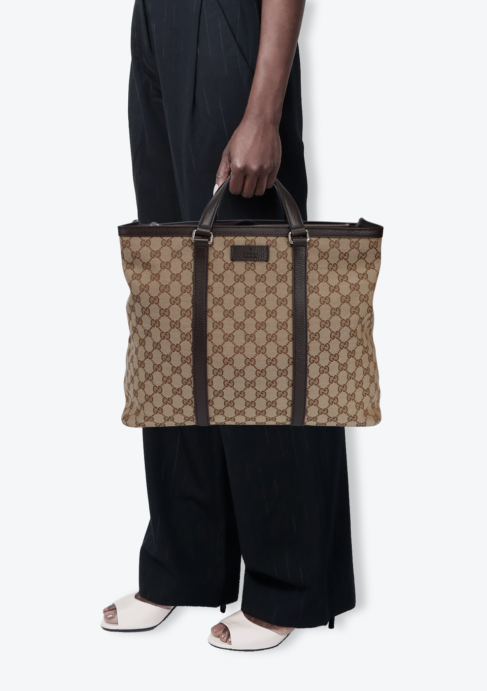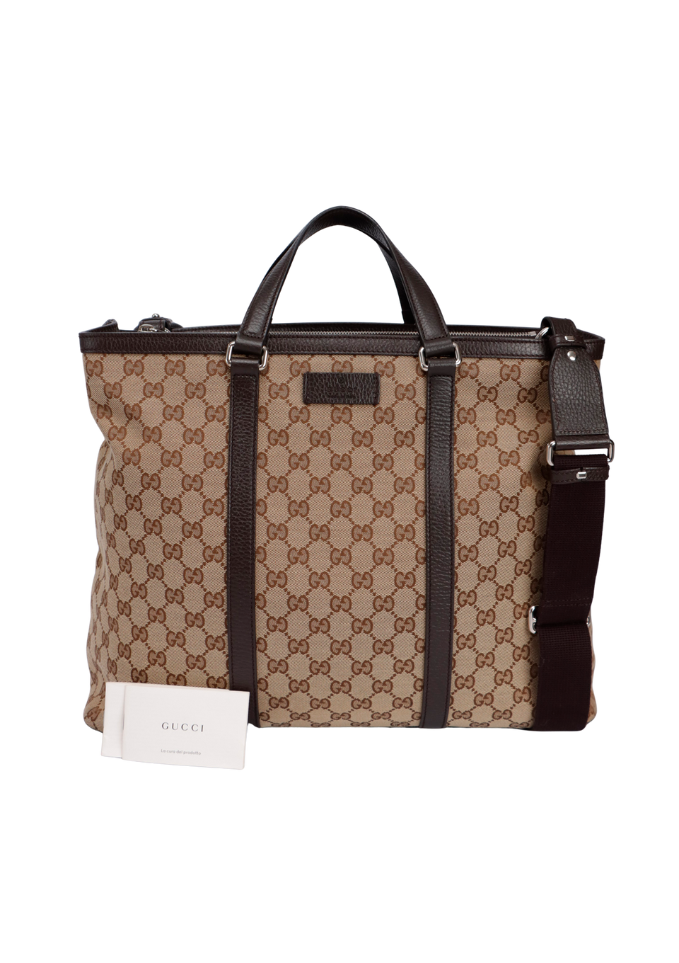 Descrição do Material: Canvas GG Supreme bege com detalhes em couro calfskin marrom