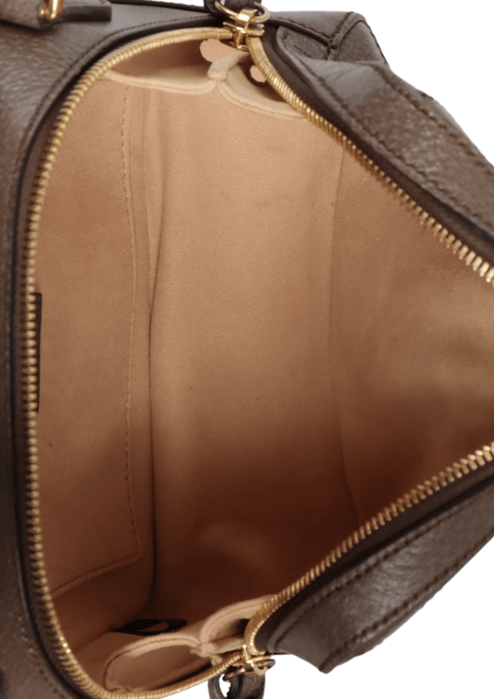 Condição: Muito bom, com aparência de seminovo. Apresenta levíssimo puído na fita central da frente e traseira, mínima opacidade nas ferragens, principalmente nas ferragens laterais e levíssimas manchas na base do forro.