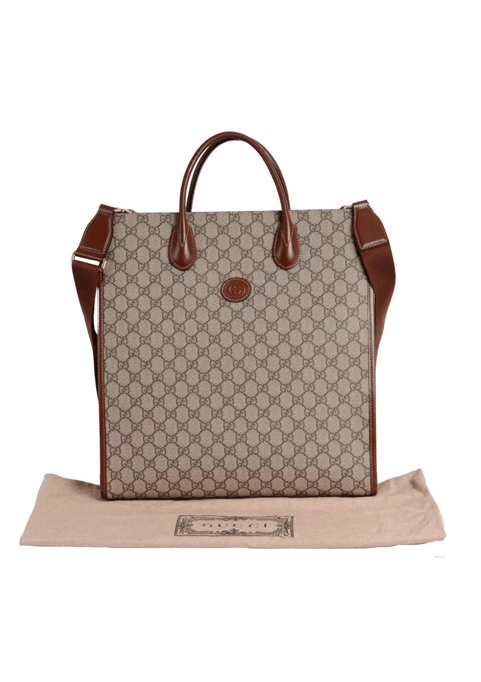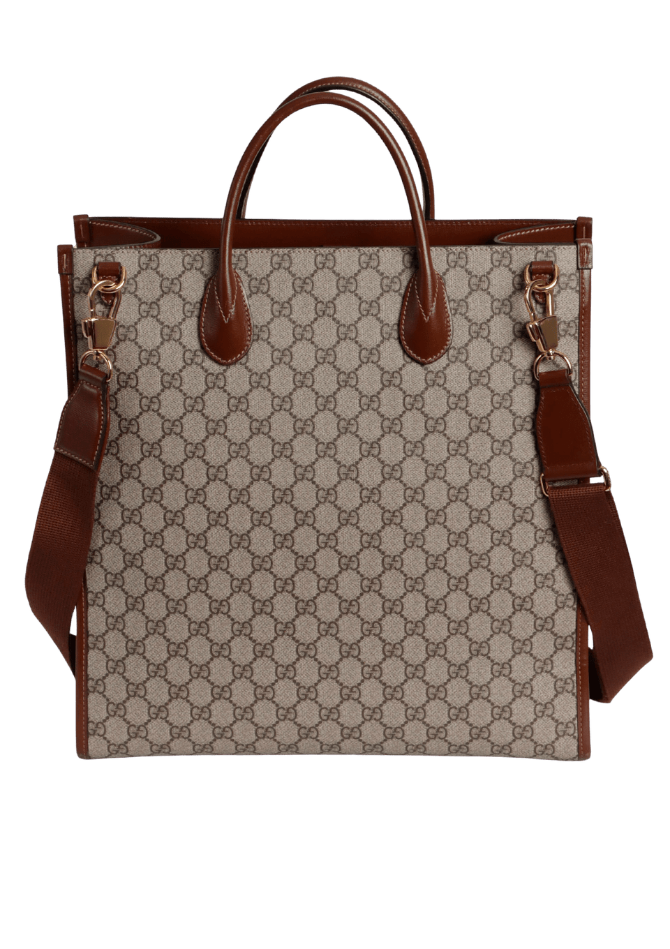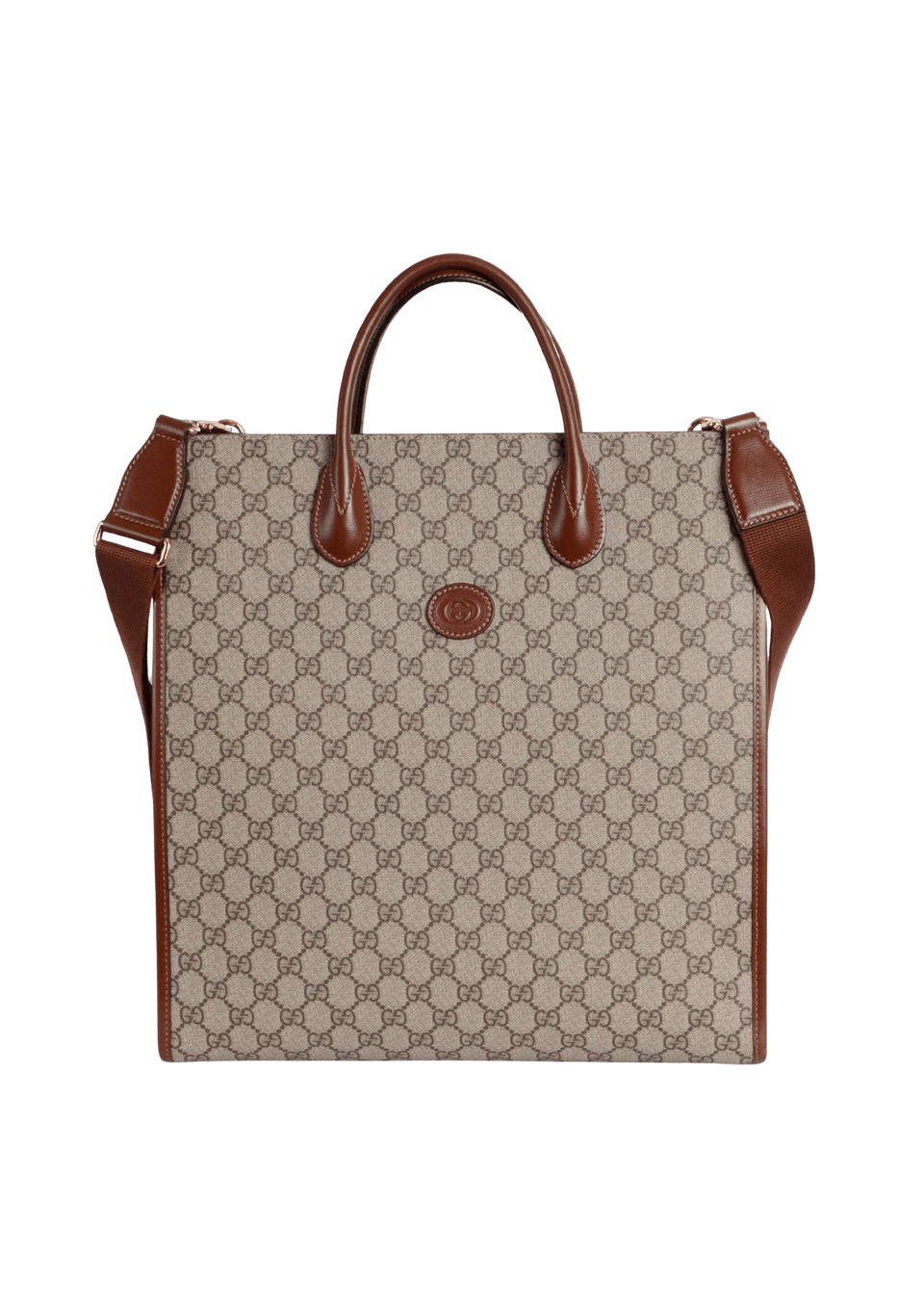 - Canvas GG Supreme com detalhes em couro calfskin marrom e alça longa em nylon marrom;