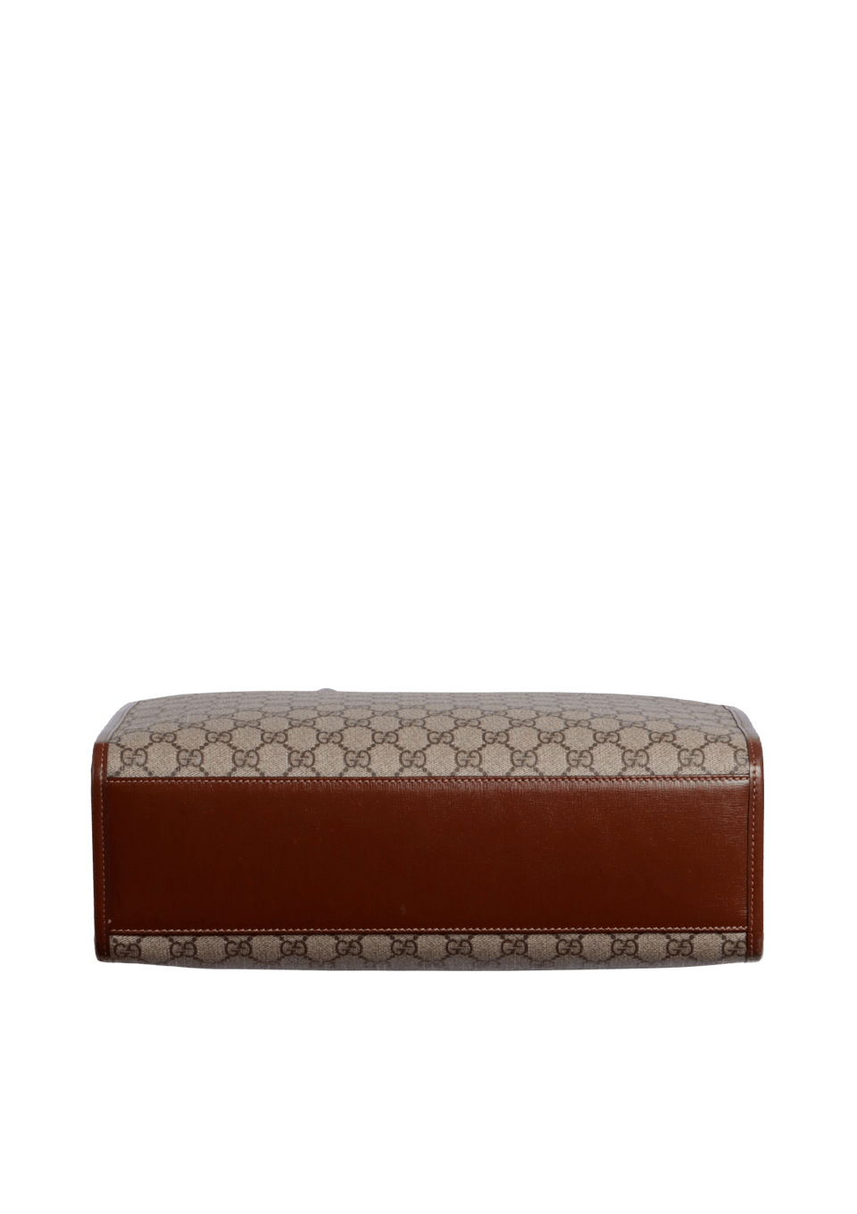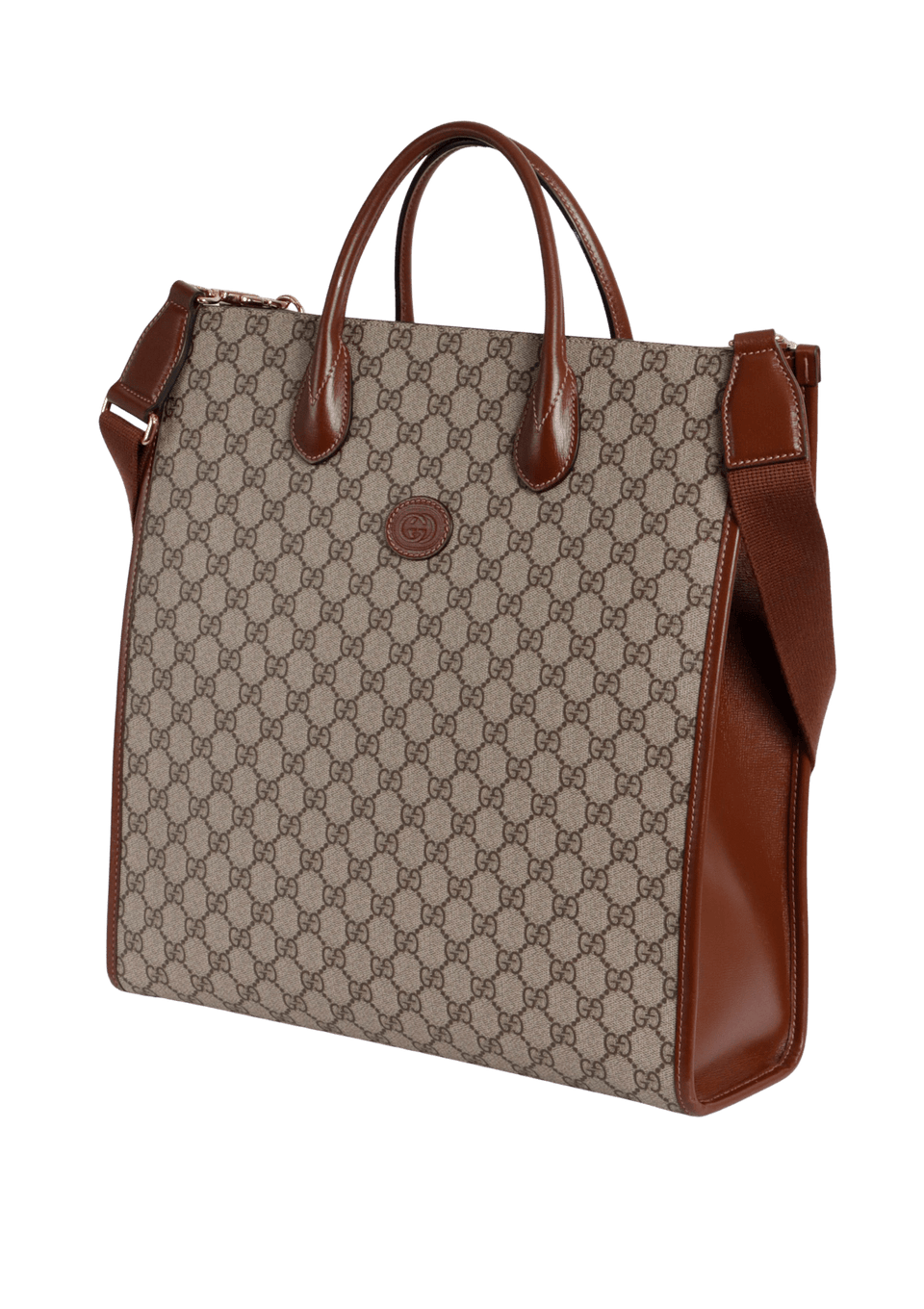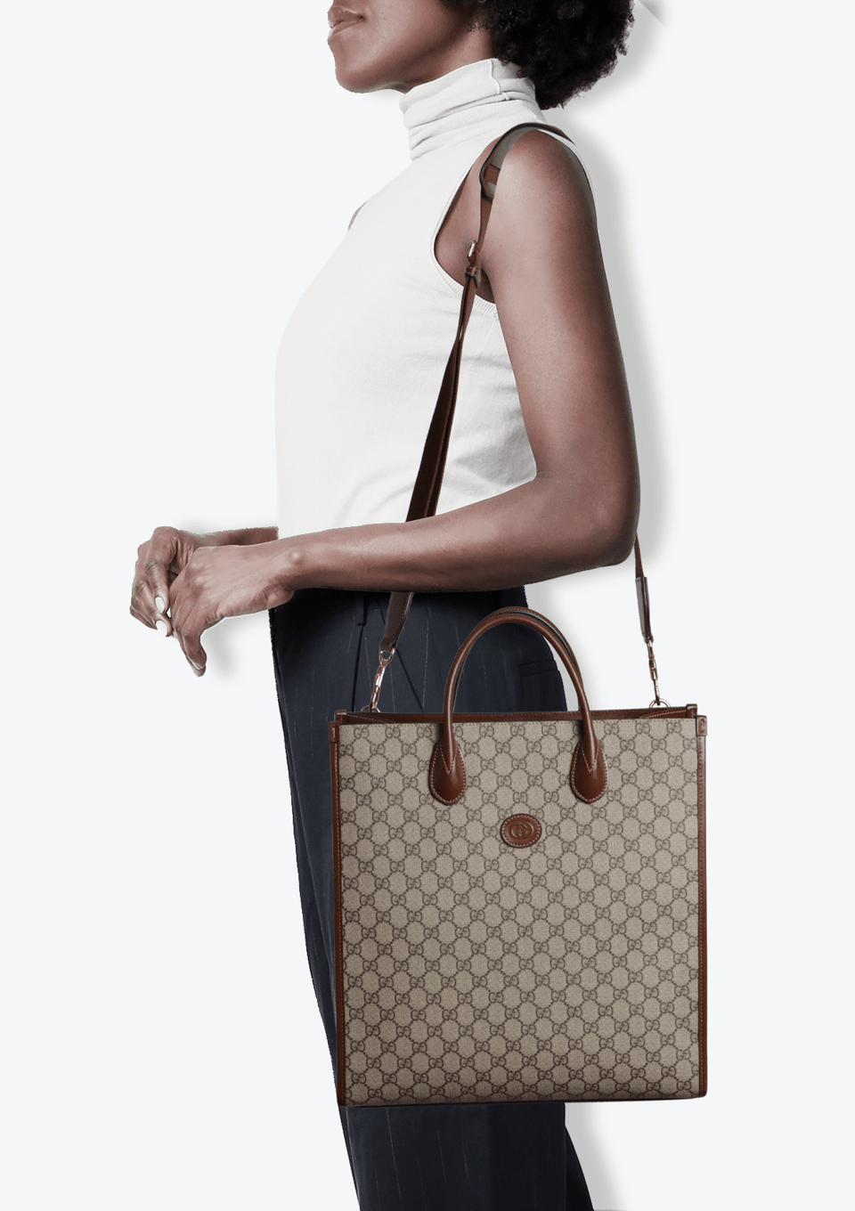 - Canvas GG Supreme com detalhes em couro calfskin marrom e alça longa em nylon marrom;