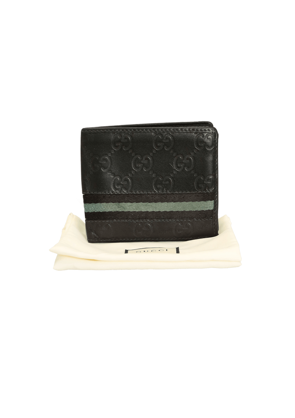- Couro Guccissima preto e faixa nas cores verde e preto;