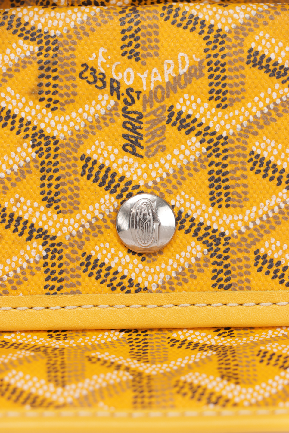 Descrição do Material: Canvas Goyardine preto com detalhes em couro calfskin amarelo