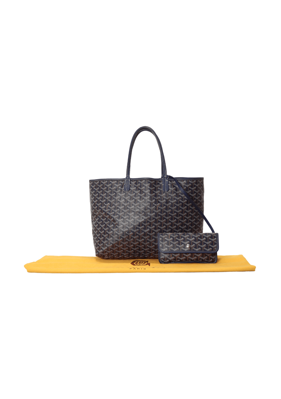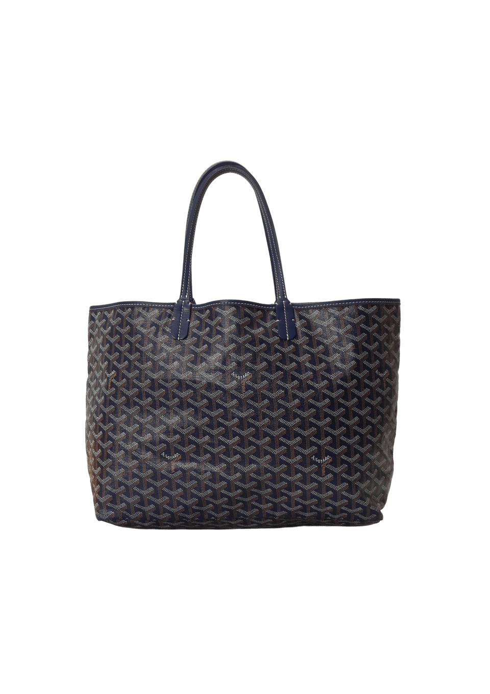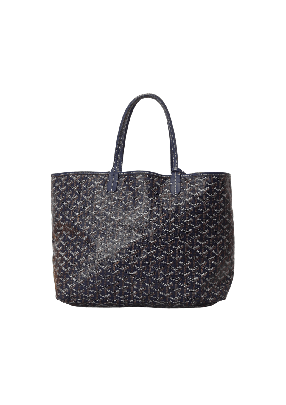 - Canvas Chevron azul, branco e marrom e couro azul;