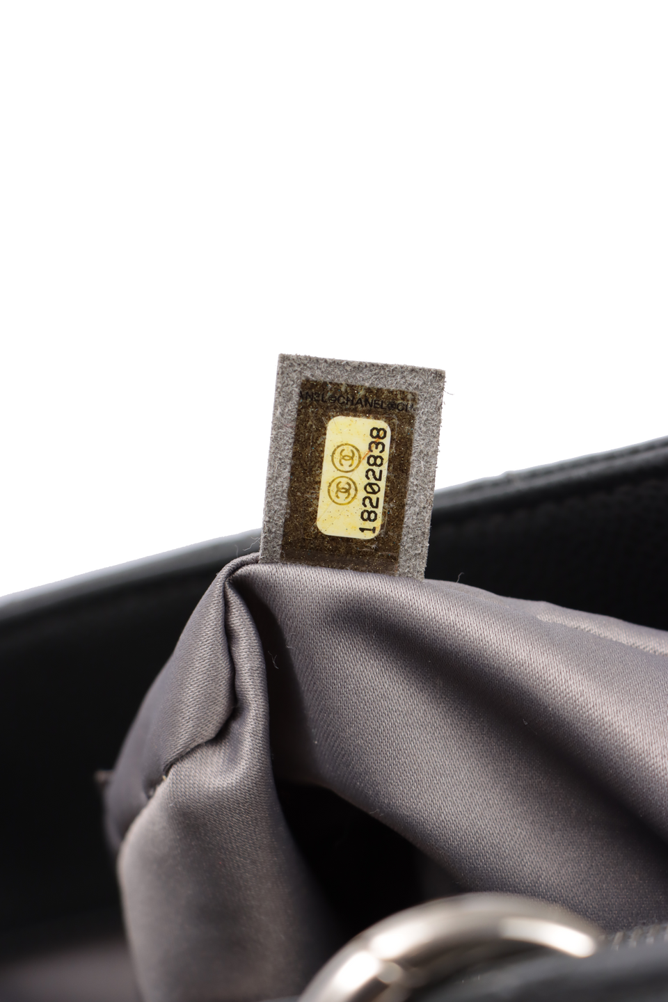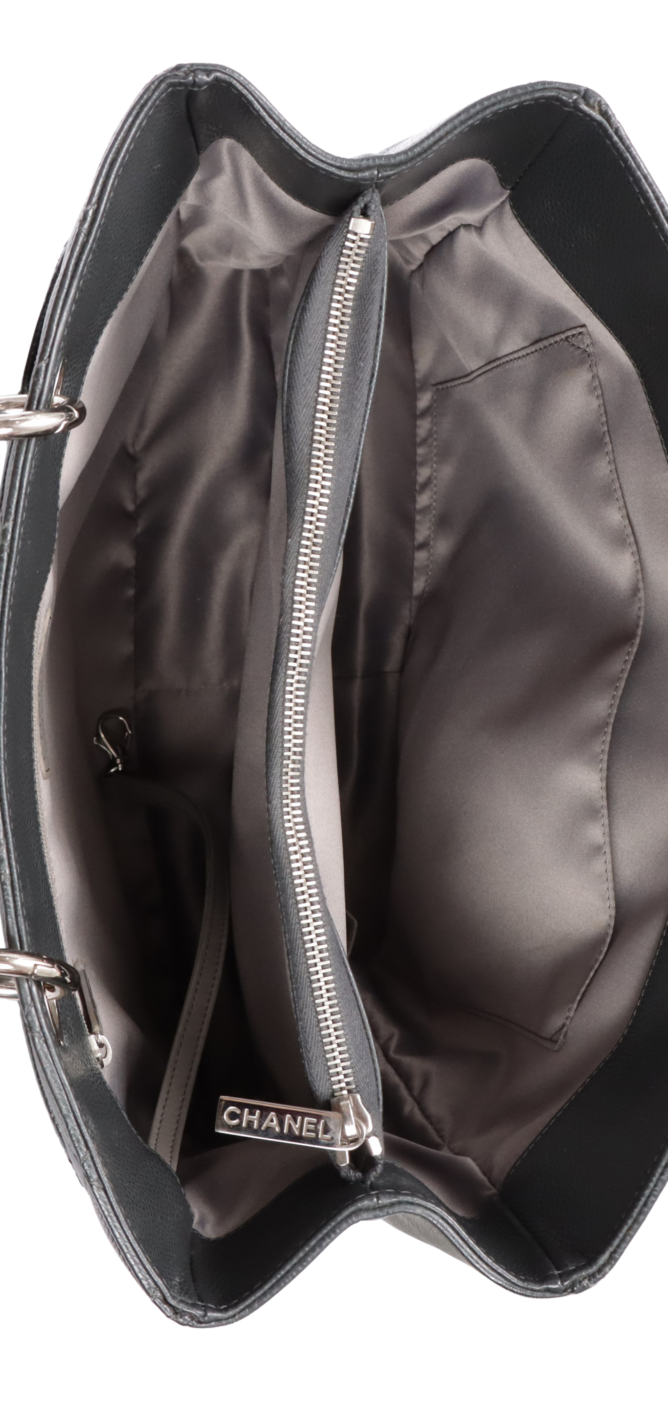 Descrição do Material: Couro calfskin cinza com acabamento Caviar e matelassê