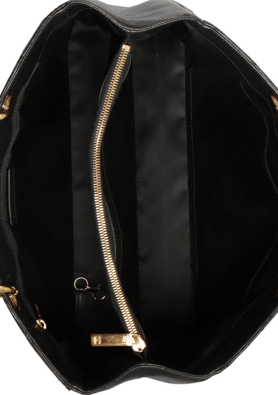- Compartimento duplo com três bolsos internos, sendo um aberto e dois fechados por cursor, e um bolso externo aberto.