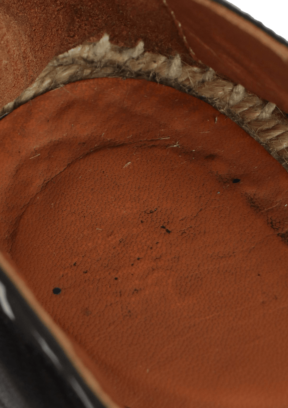 - Couro preto e marrom e sisal nas plataformas.