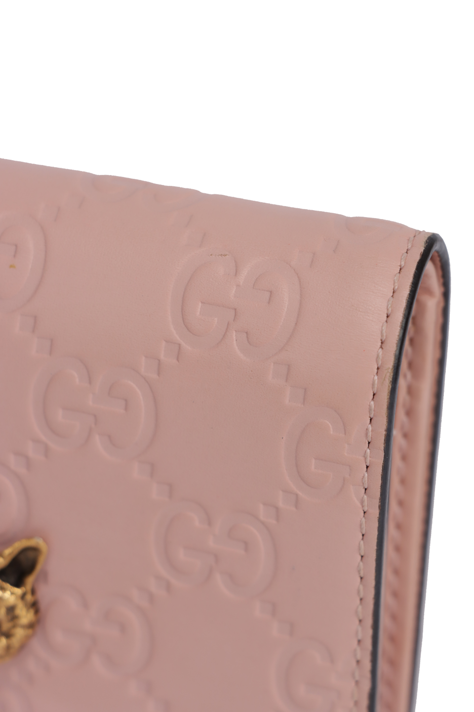 Descrição do Material: Couro calfskin rosa com acabamento Guccissima