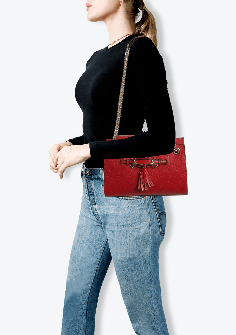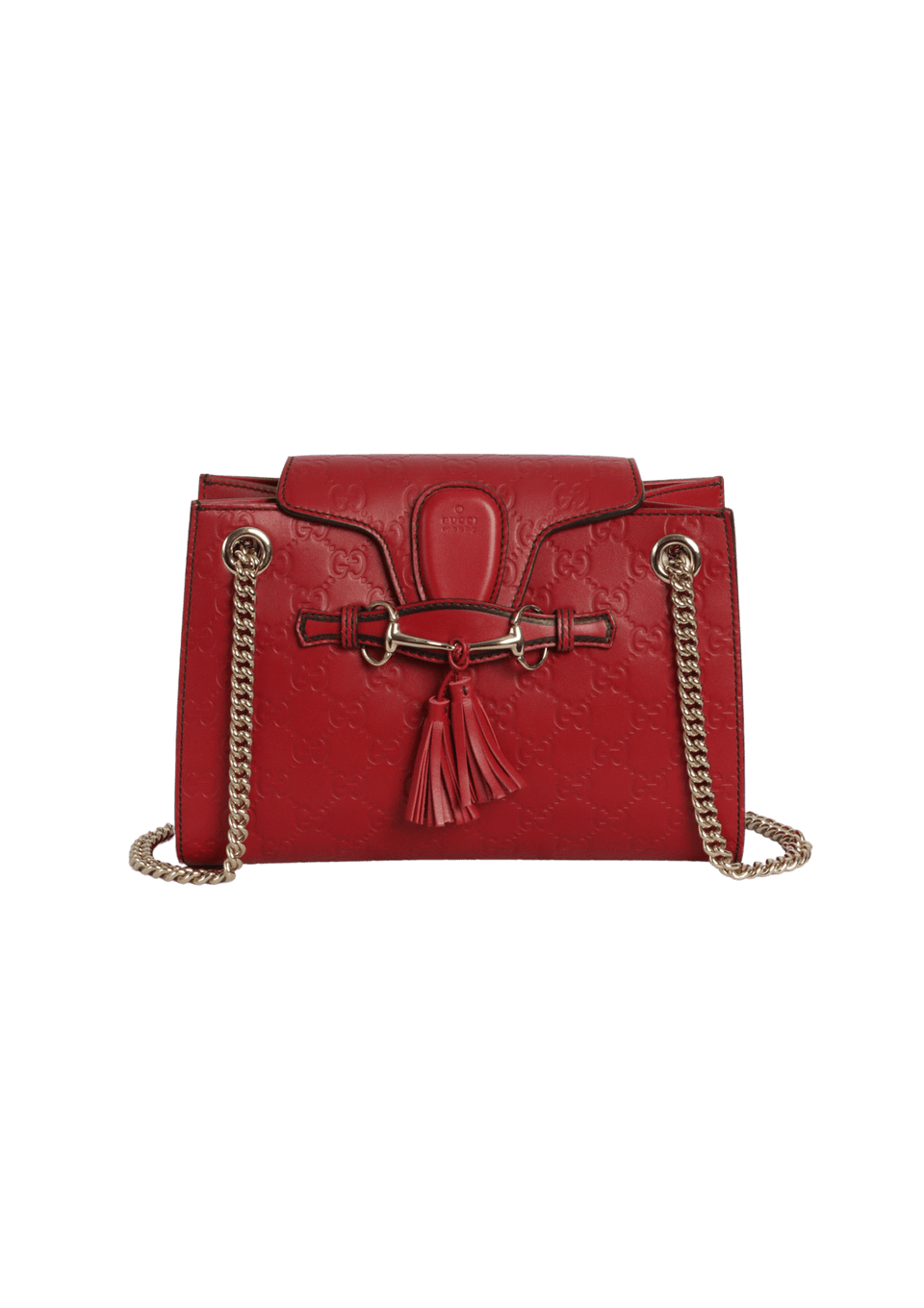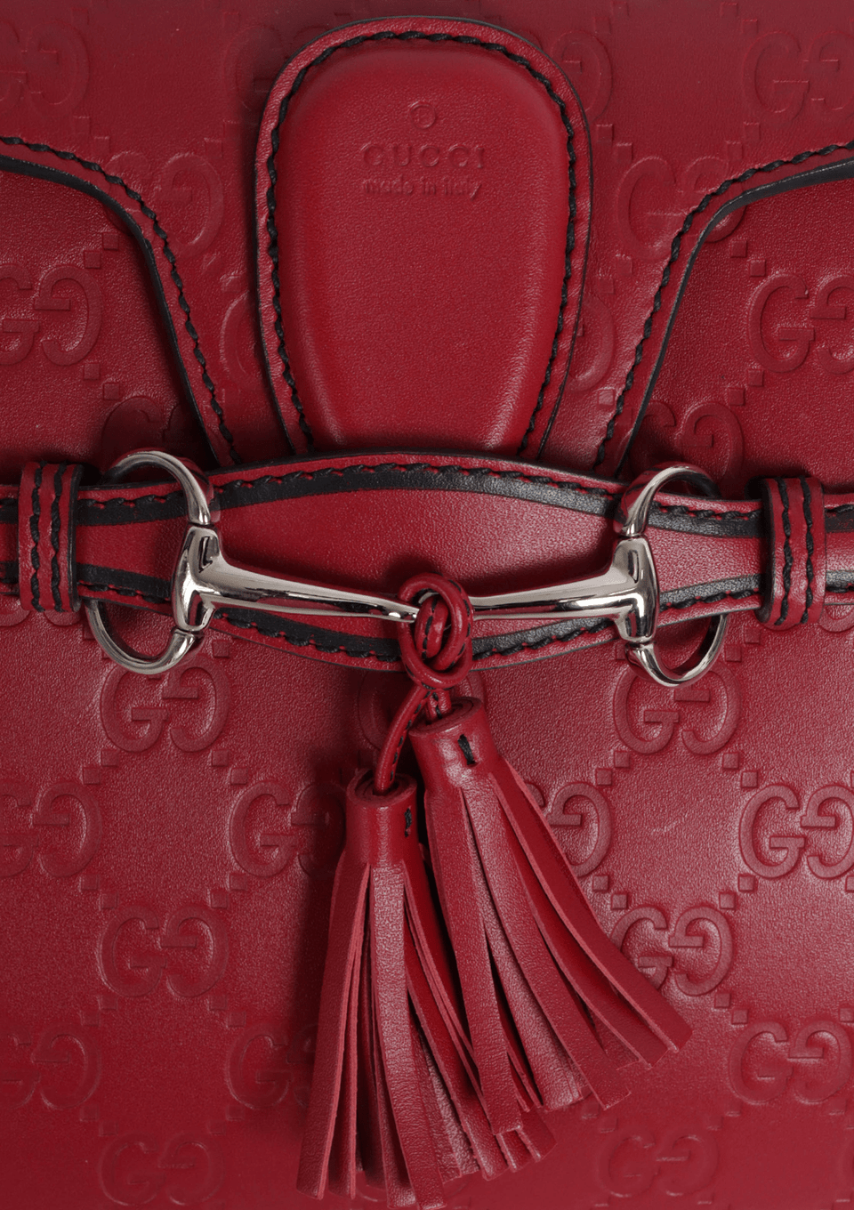 - Couro calfskin vermelho com acabamento Guccissima em baixo-relevo;