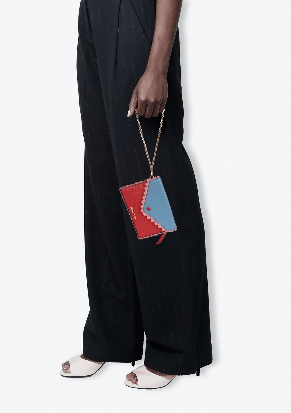 Descrição do Material: Couro calfskin vermelho, rosa e azul